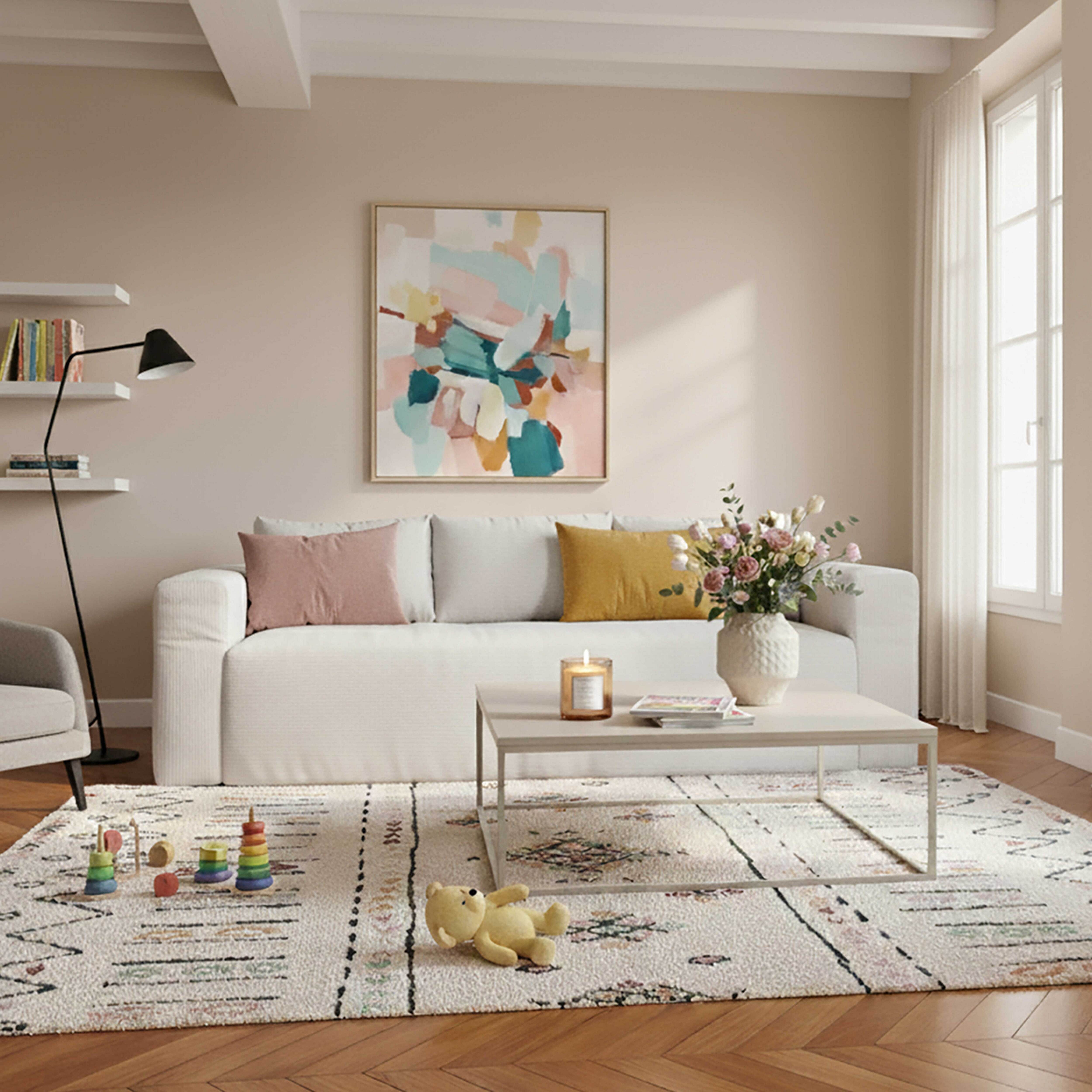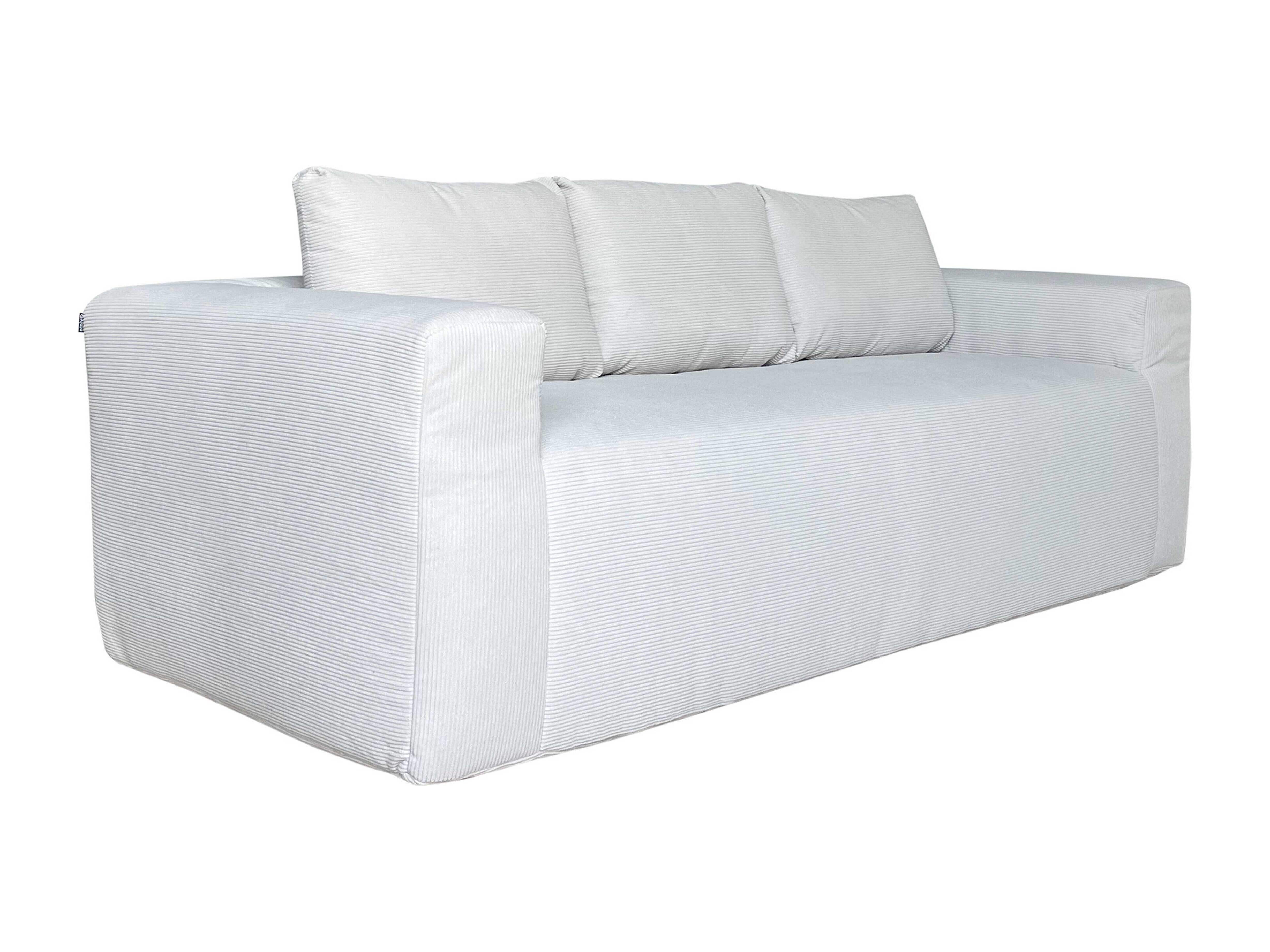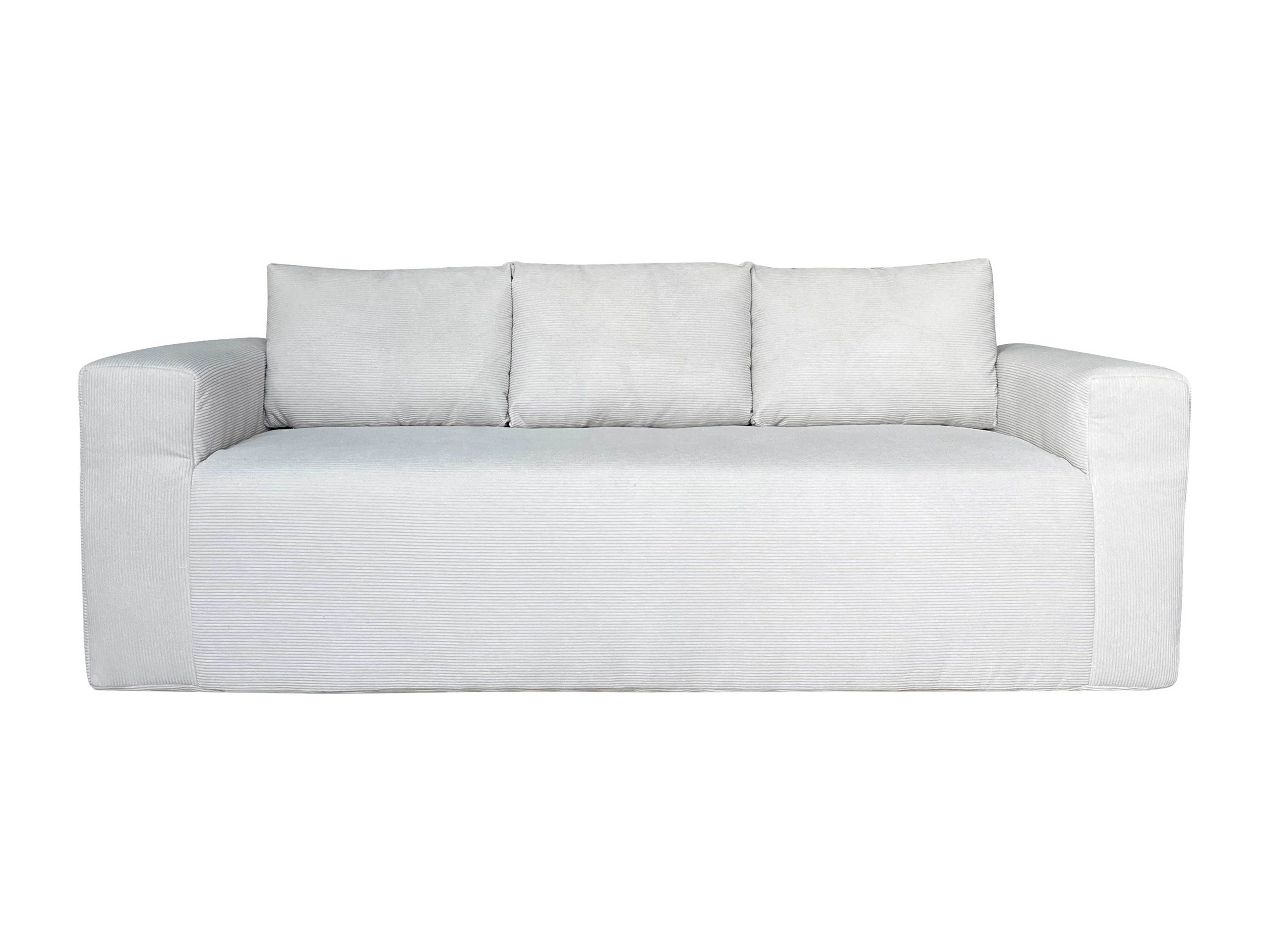 Canapé 3 places en tissu côtelé avec coussins écru