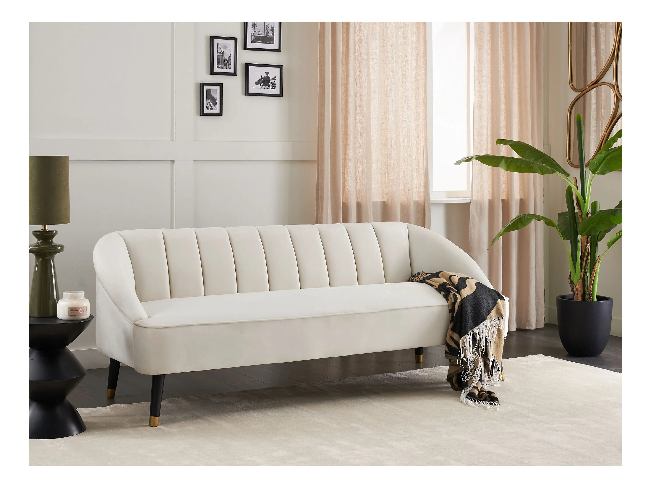 Canapé 3 places ALSVAG Velours Blanc cassé