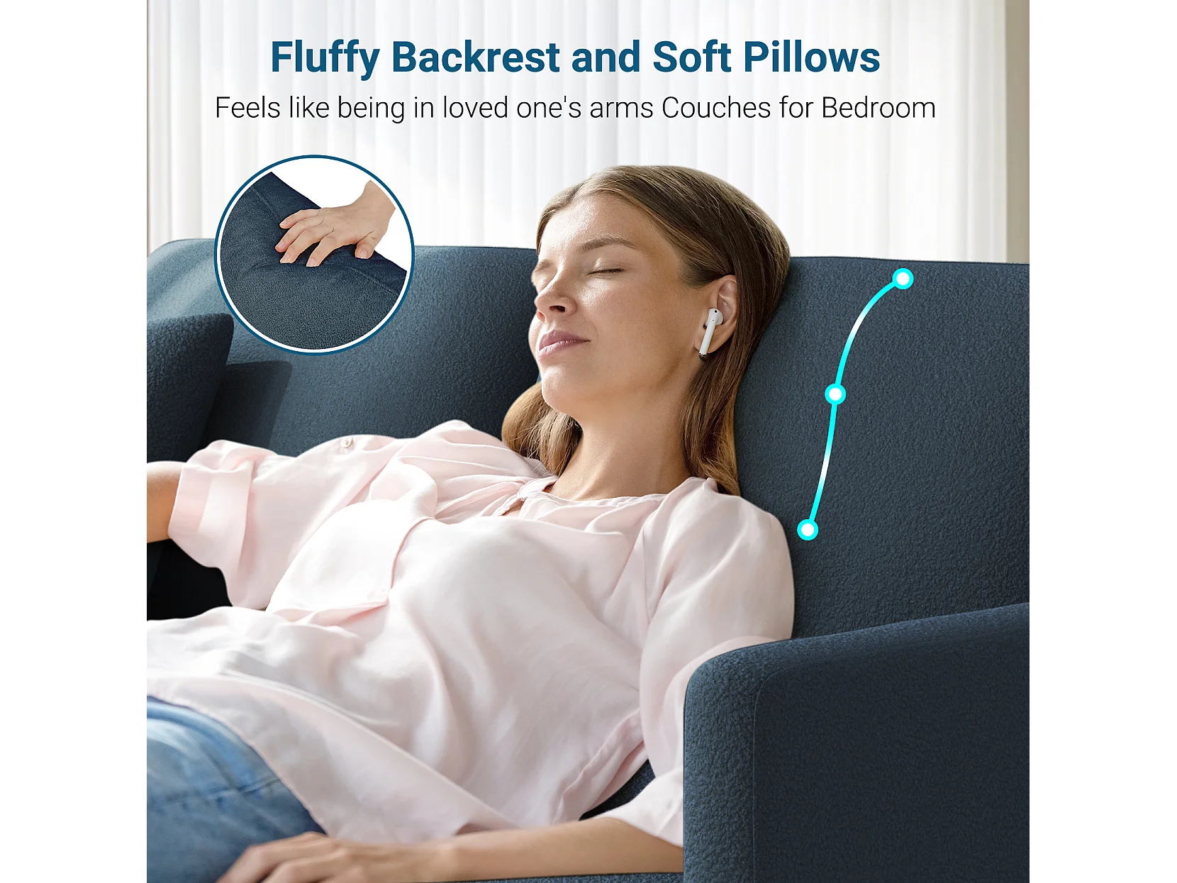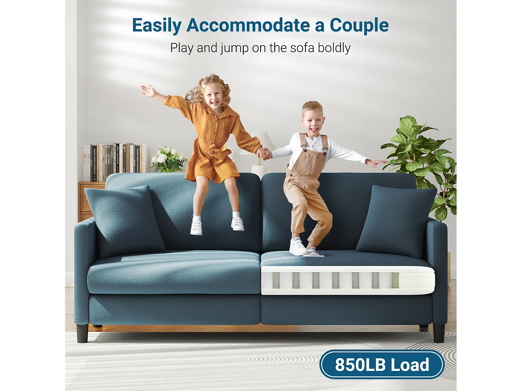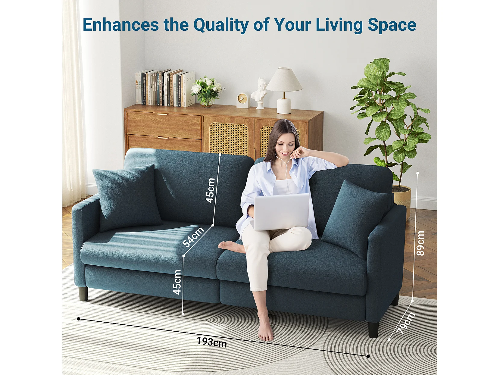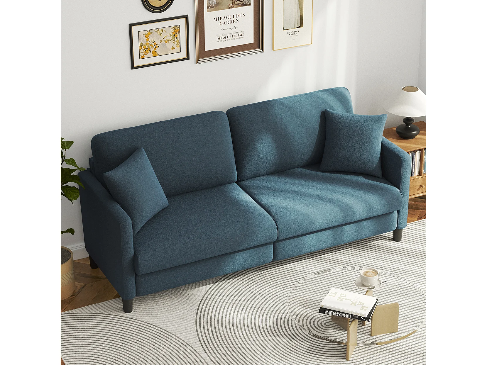 Canapé 3 Places en Velours Teddy,Canapé Droit Confort en Bois Massif,Loveseat avec Accoudoirs,193x79x89cm,Bleu-Gris