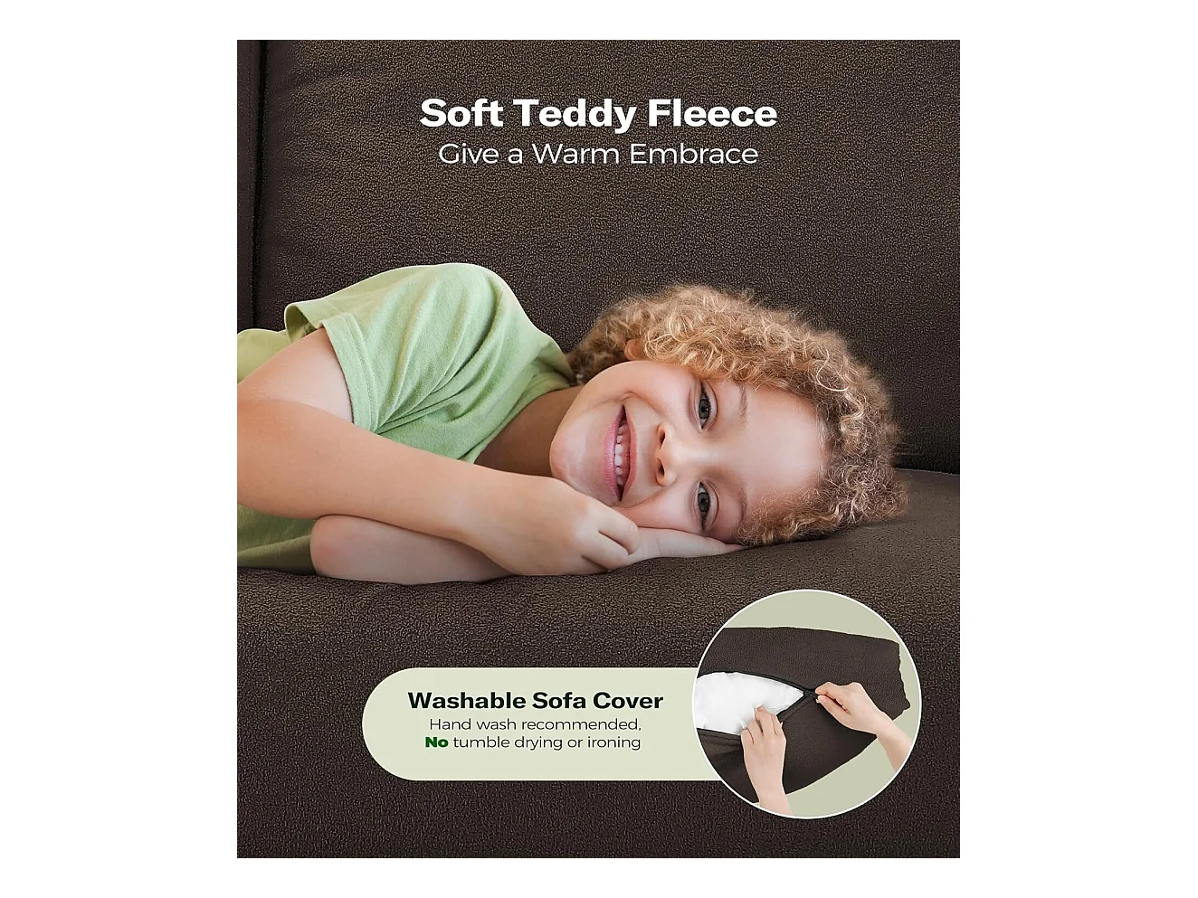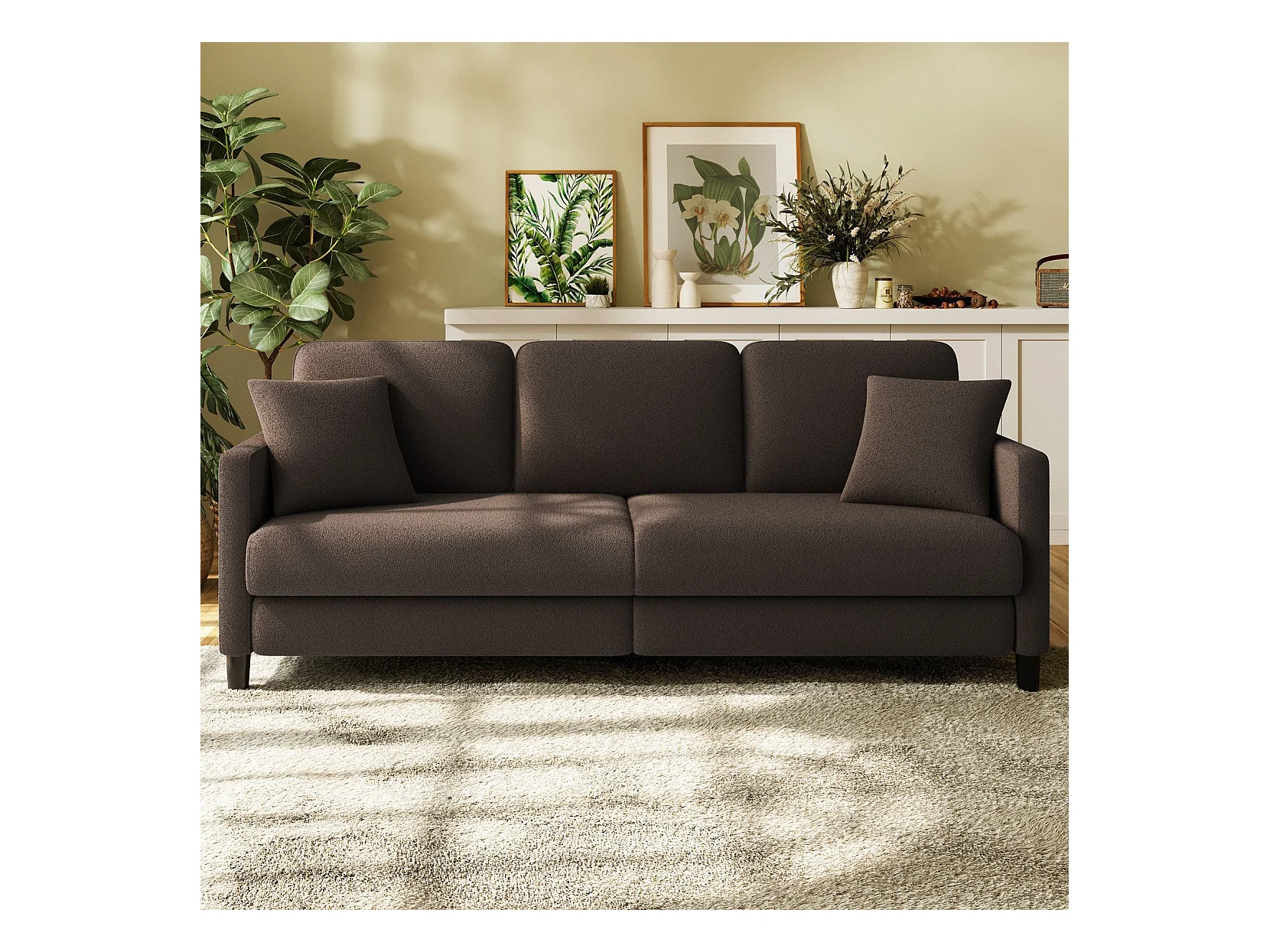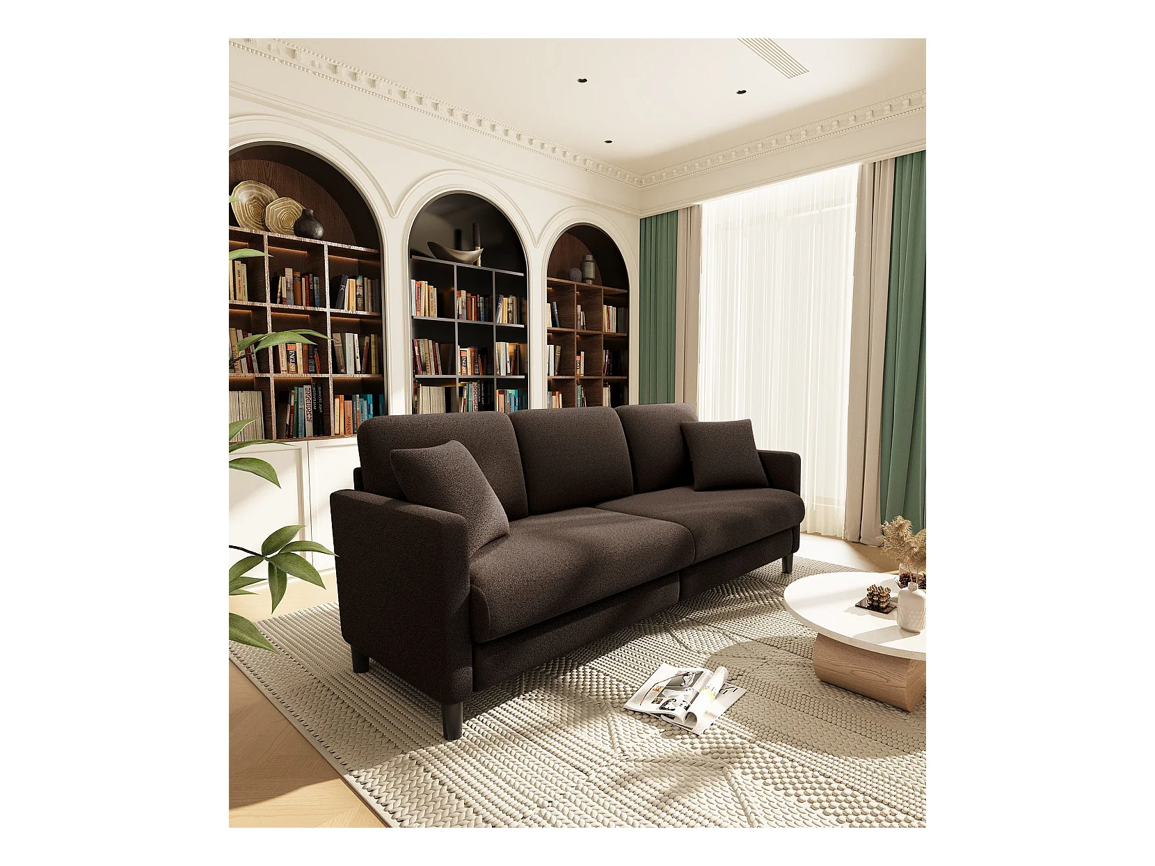 Canapé 3 Places en Velours Teddy,Grand Canapé Droit Confort en Bois Massif,Loveseat avec Accoudoirs,210 x 79 x 89 cm - Marron
