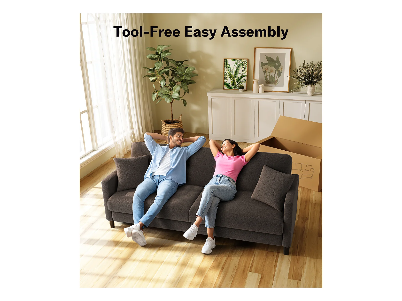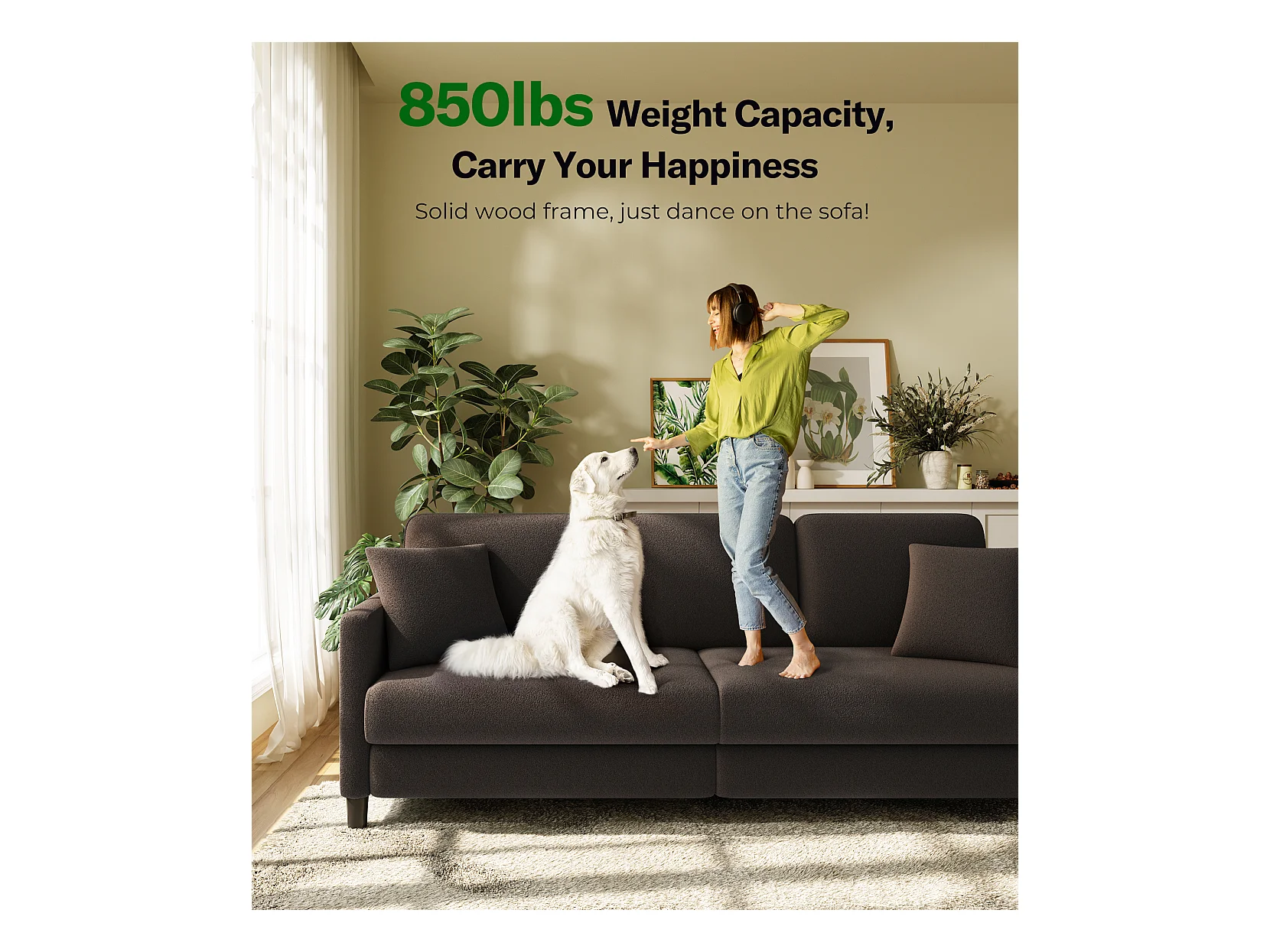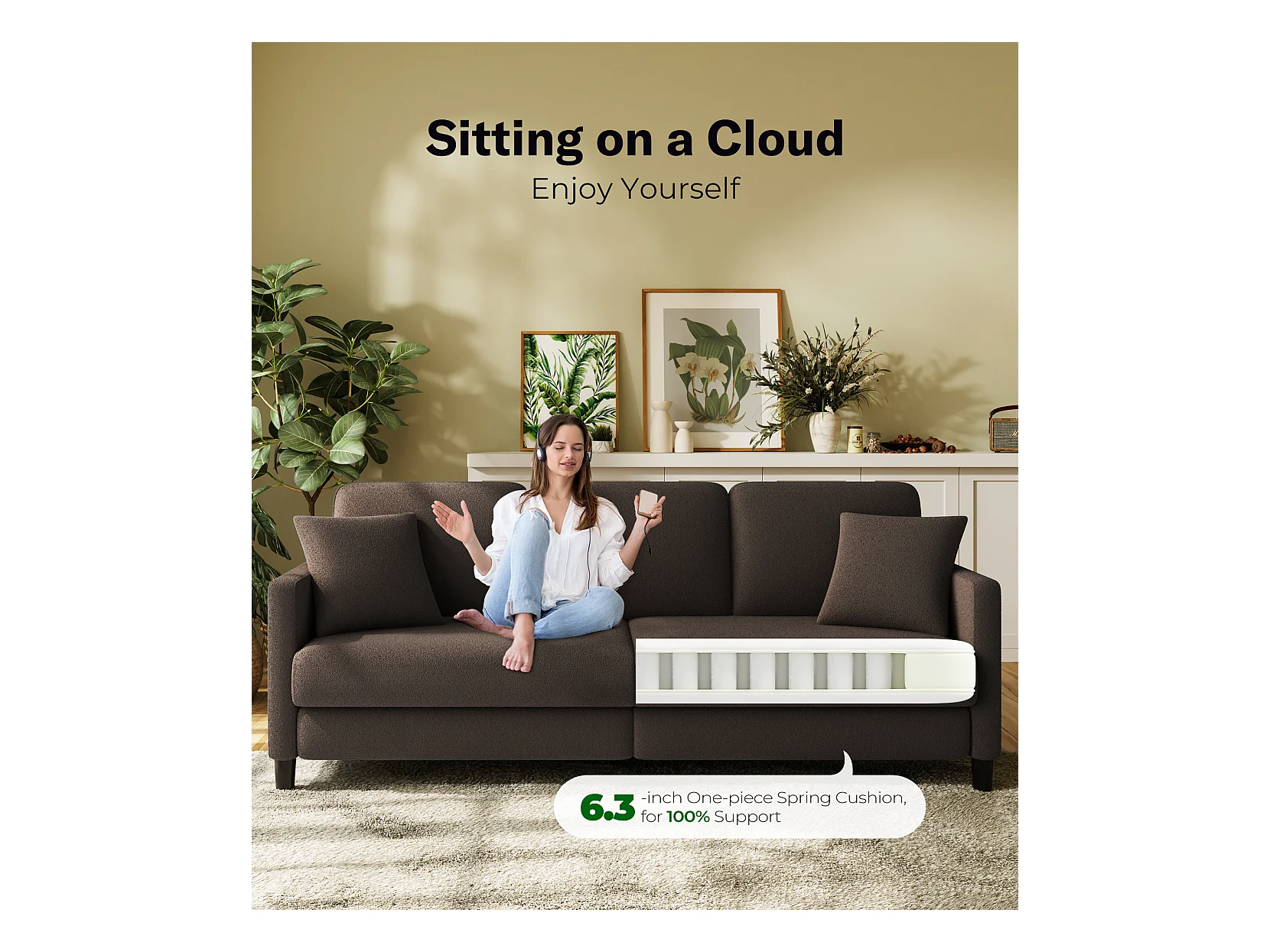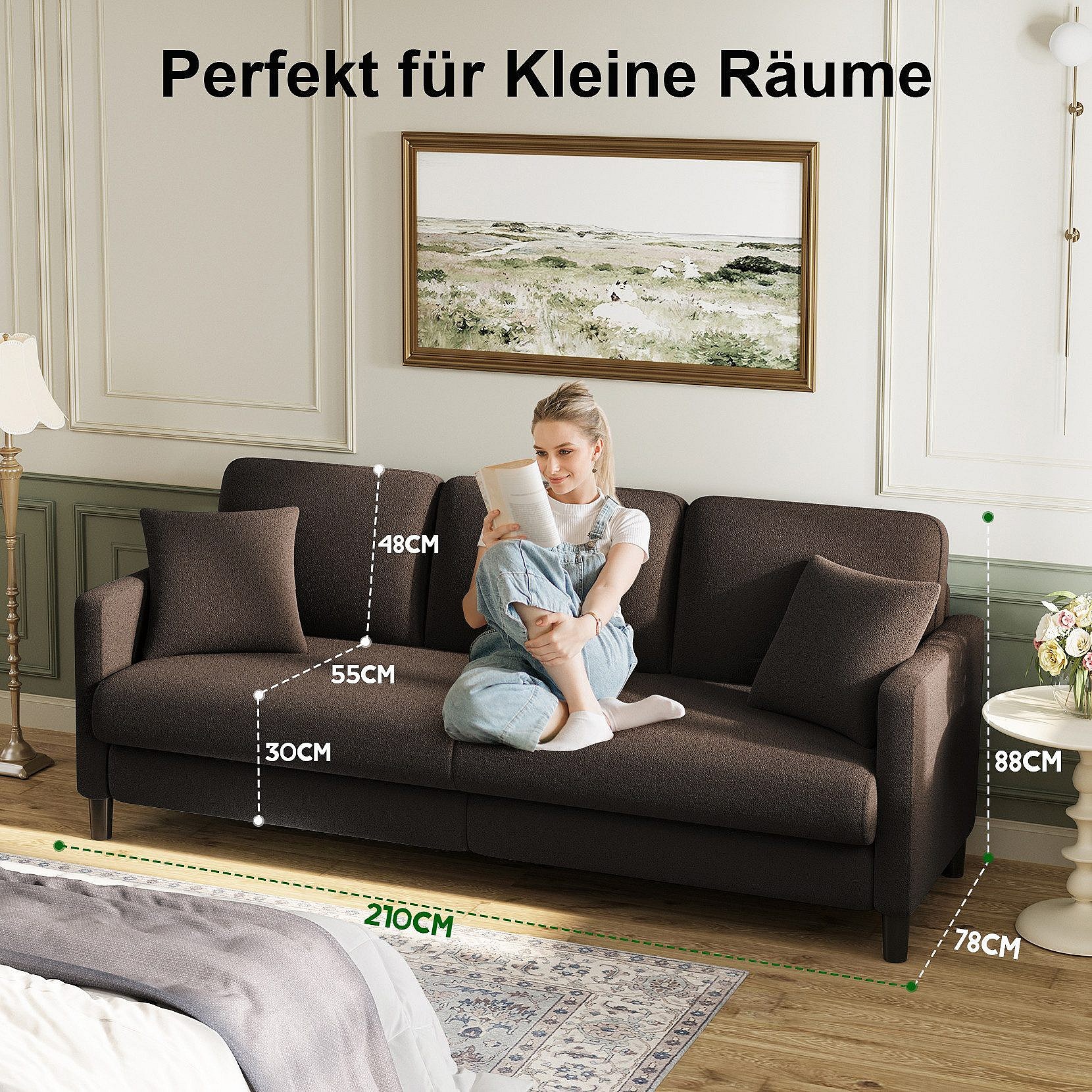 Canapé 3 Places en Velours Teddy,Grand Canapé Droit Confort en Bois Massif,Loveseat avec Accoudoirs,210 x 79 x 89 cm - Marron