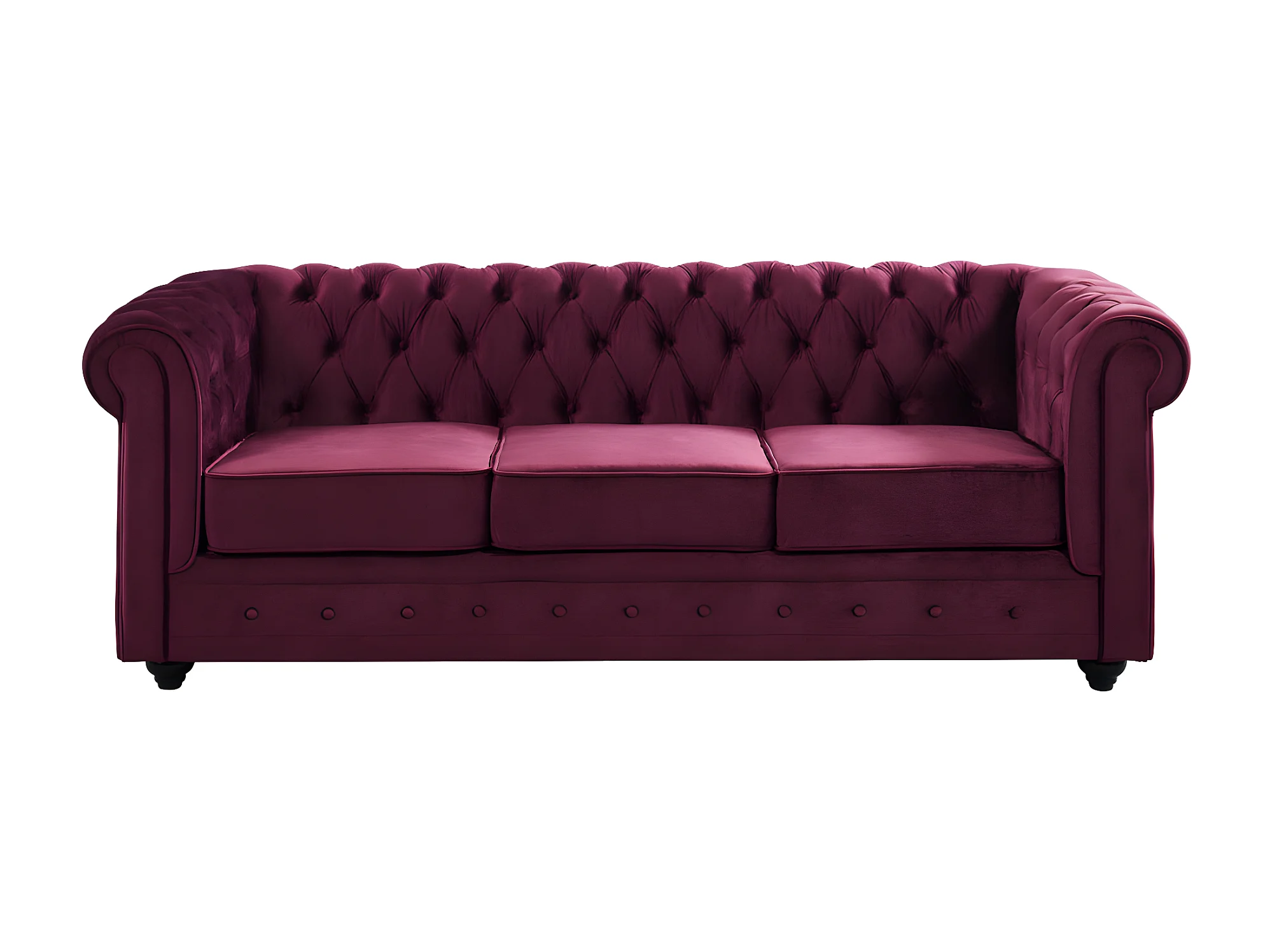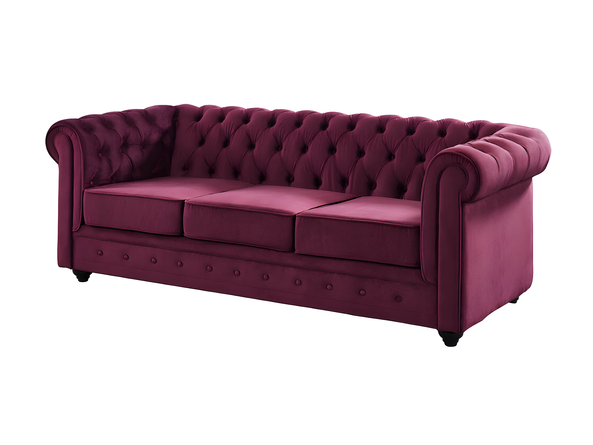 Canapé 3 places et 2 fauteuils CHESTERFIELD - Velours pourpre