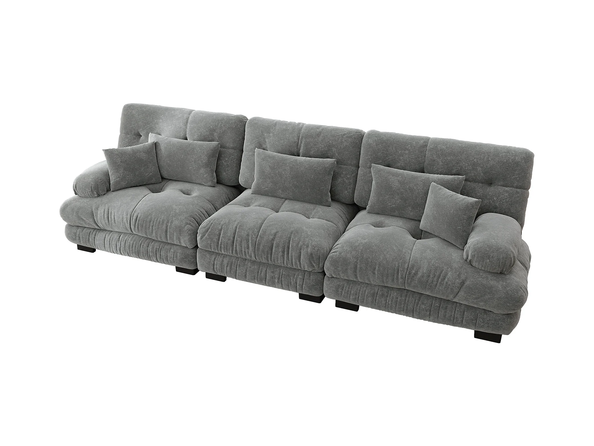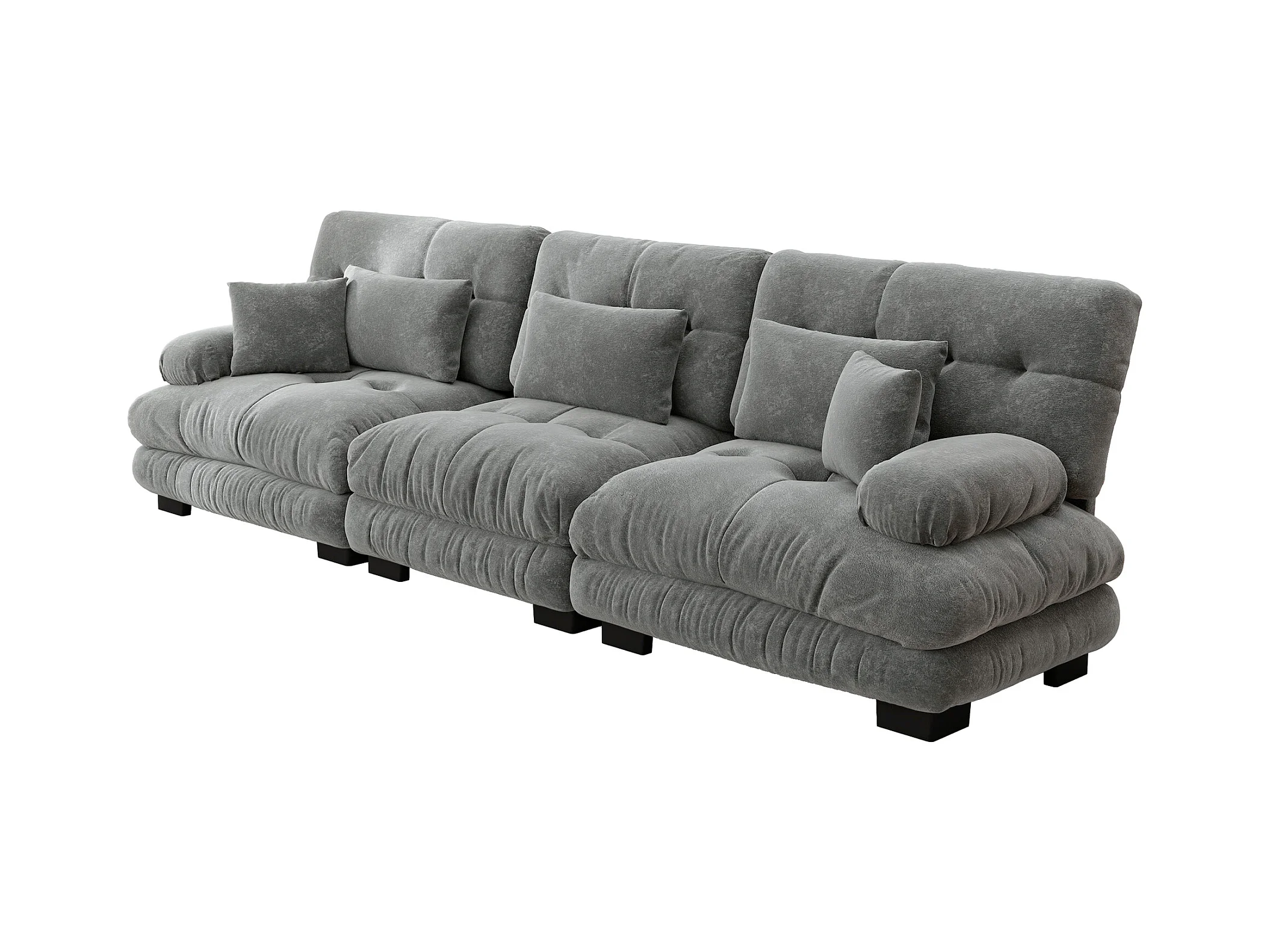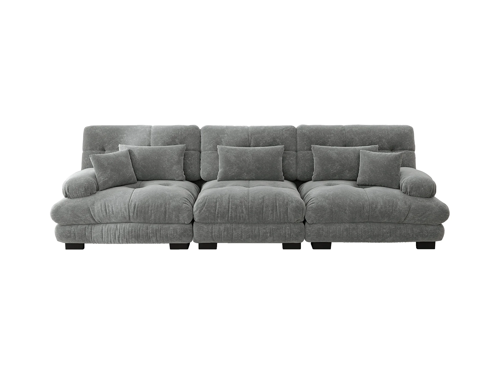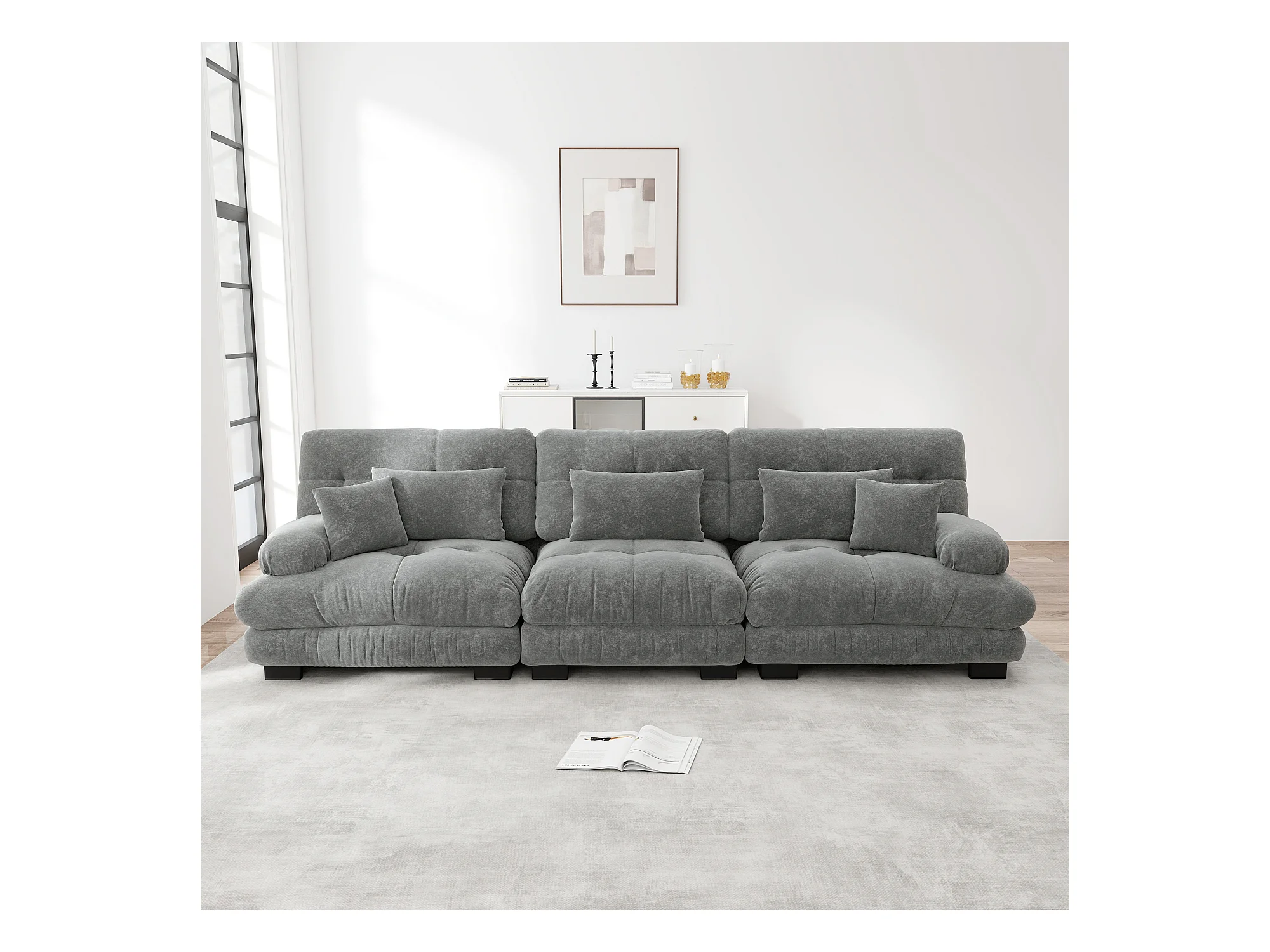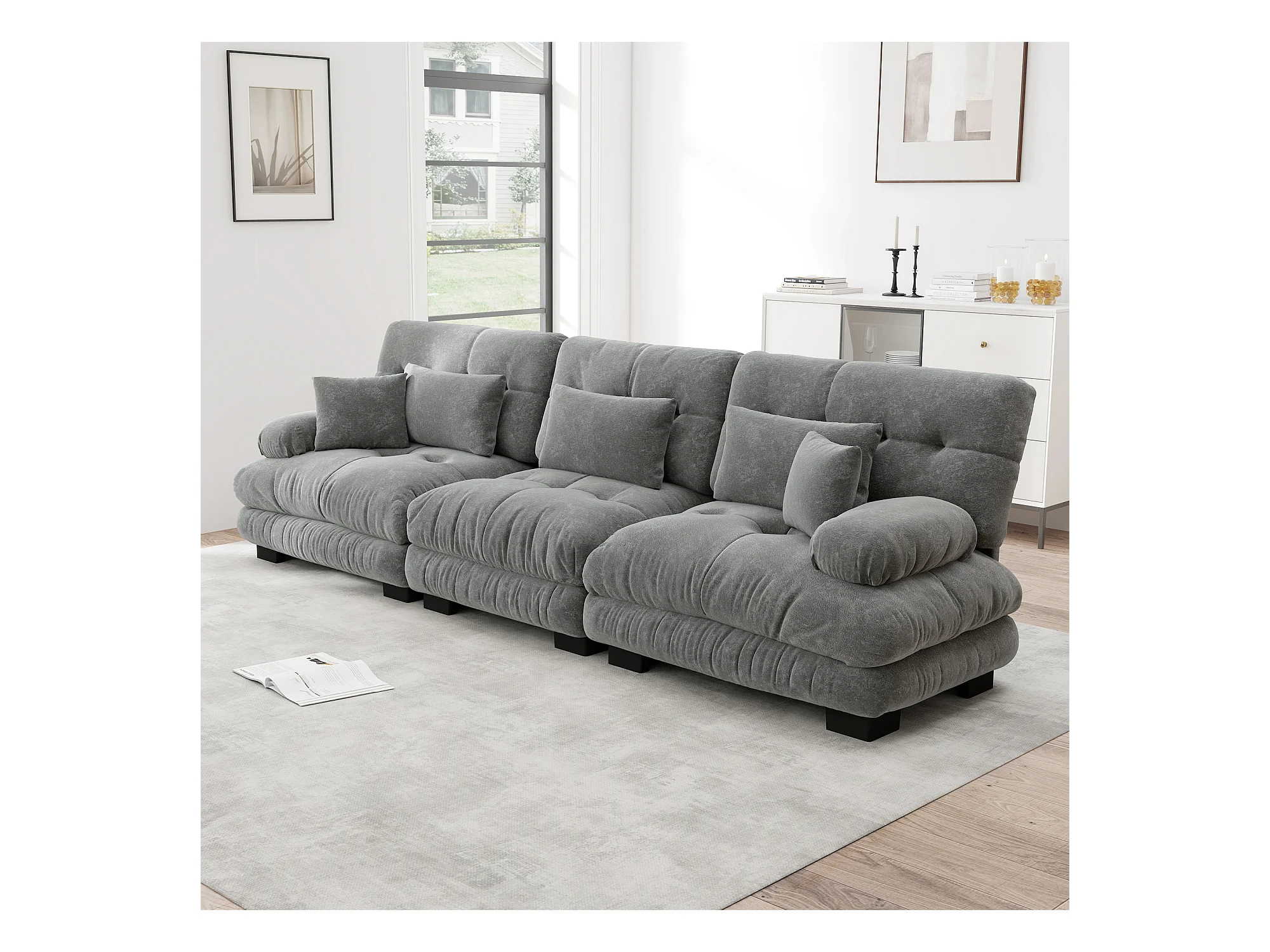 Canapé 3 places gris - Canapé droit avec 3 coussins lombaires et 3 coussins décoratifs - chenille