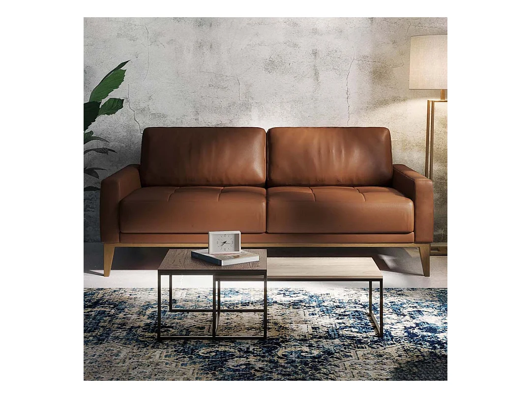 Canapé 3 places de style vintage recouvert de cuir naturel