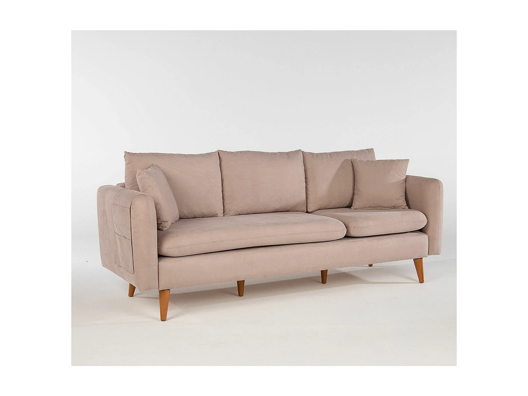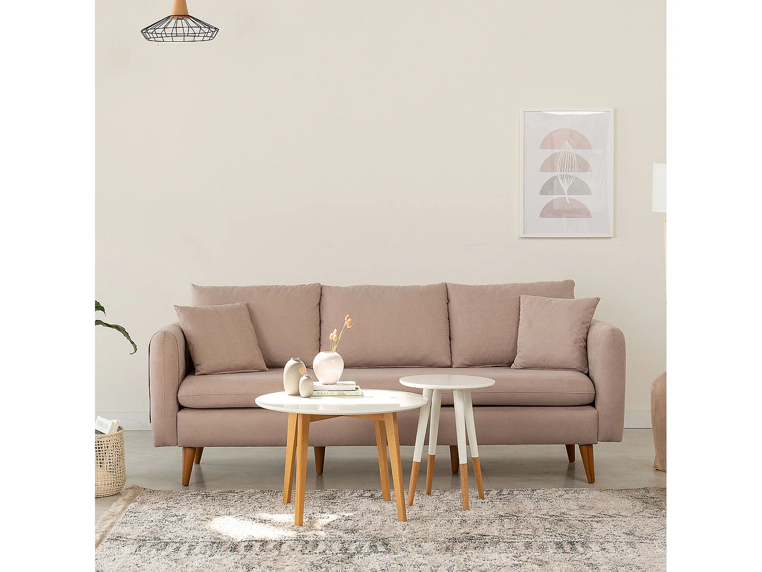 Fauteuil cabriolet et pouf en tissu bouclette blanc JOVANA