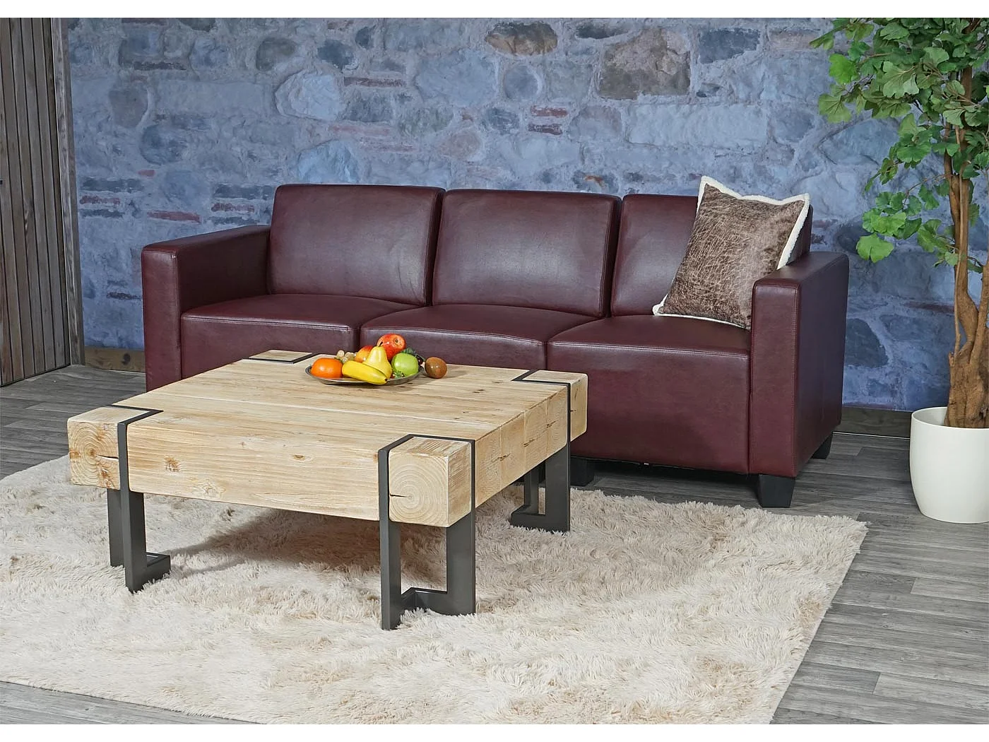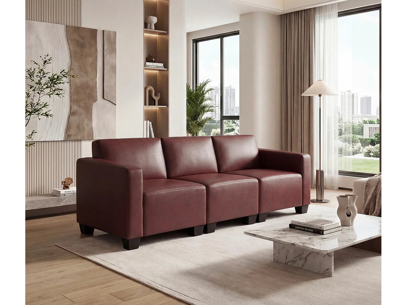 Canapé 3 places Moncalieri, rouge-brun