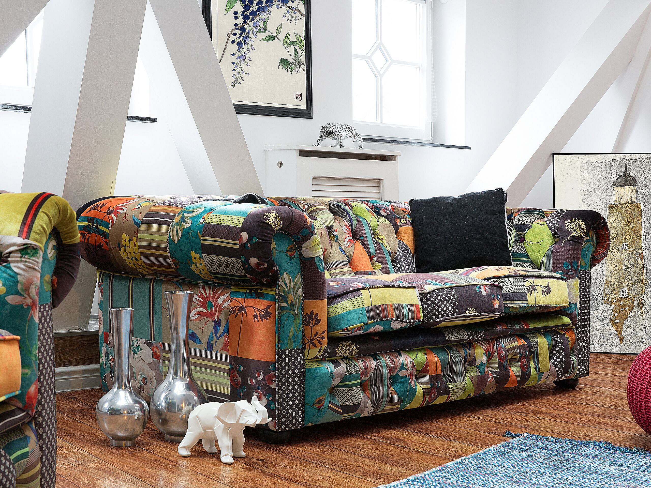 Canapé 3 places CHESTERFIELD Tissu Vert clair
