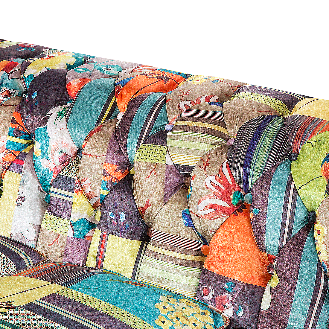 Canapé Chesterfield avec traversins 3 places jaune velours