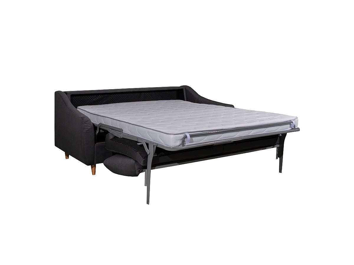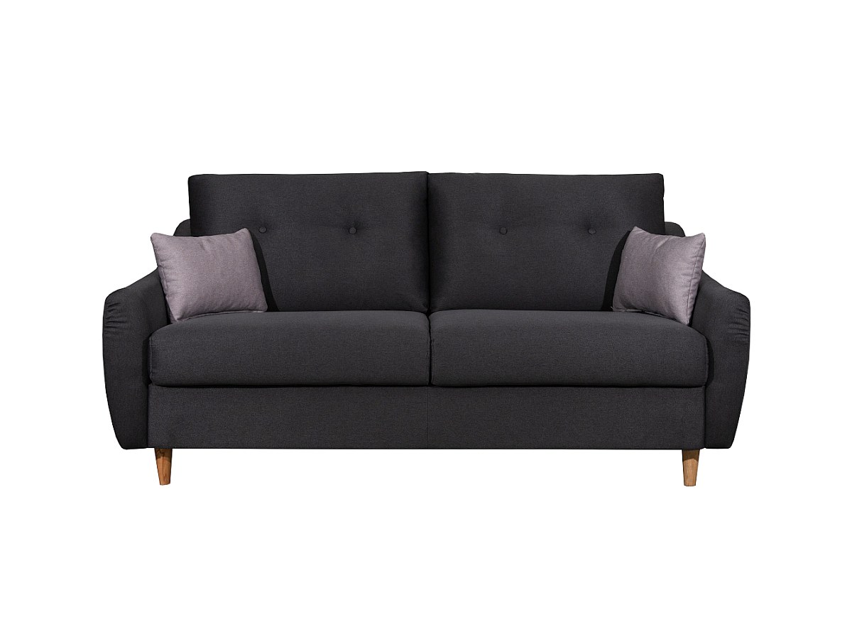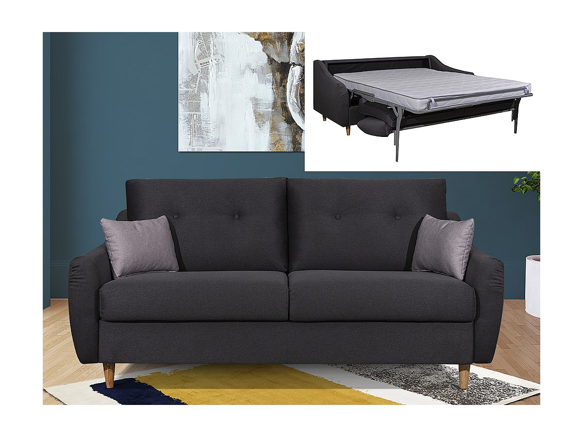 Canapé 3 places convertible express en tissu MORANE - Anthracite et coussins argents