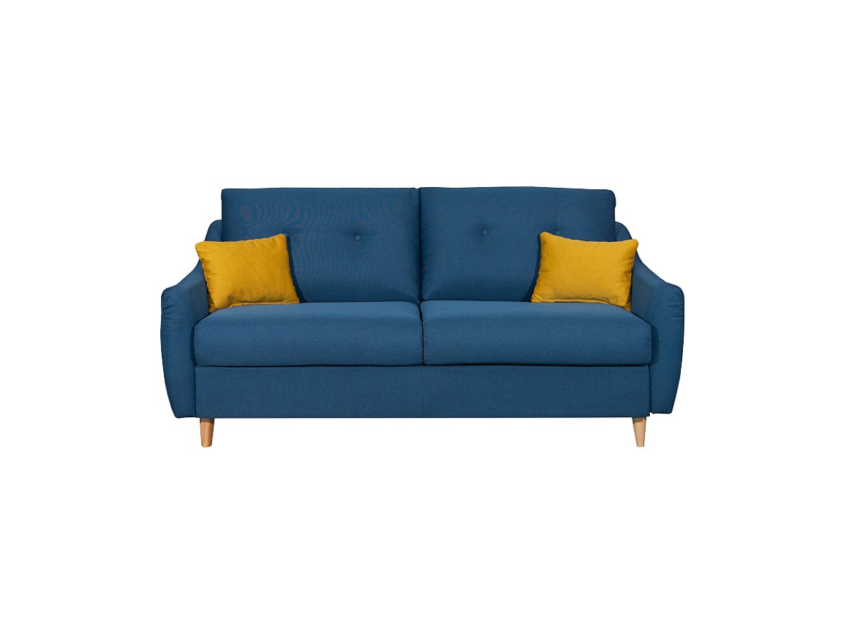 Canapé 3 places convertible express en tissu MORANE - Bleu et coussins jaunes