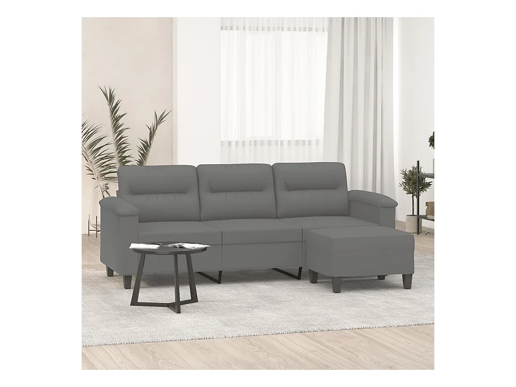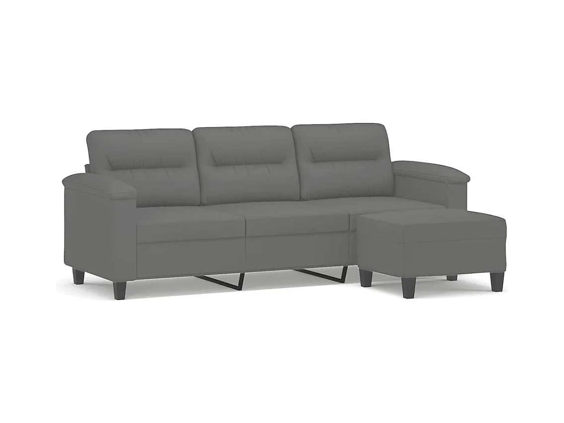 Canapé 3 places repose-pieds Gris foncé 180 cm Tissu microfibre