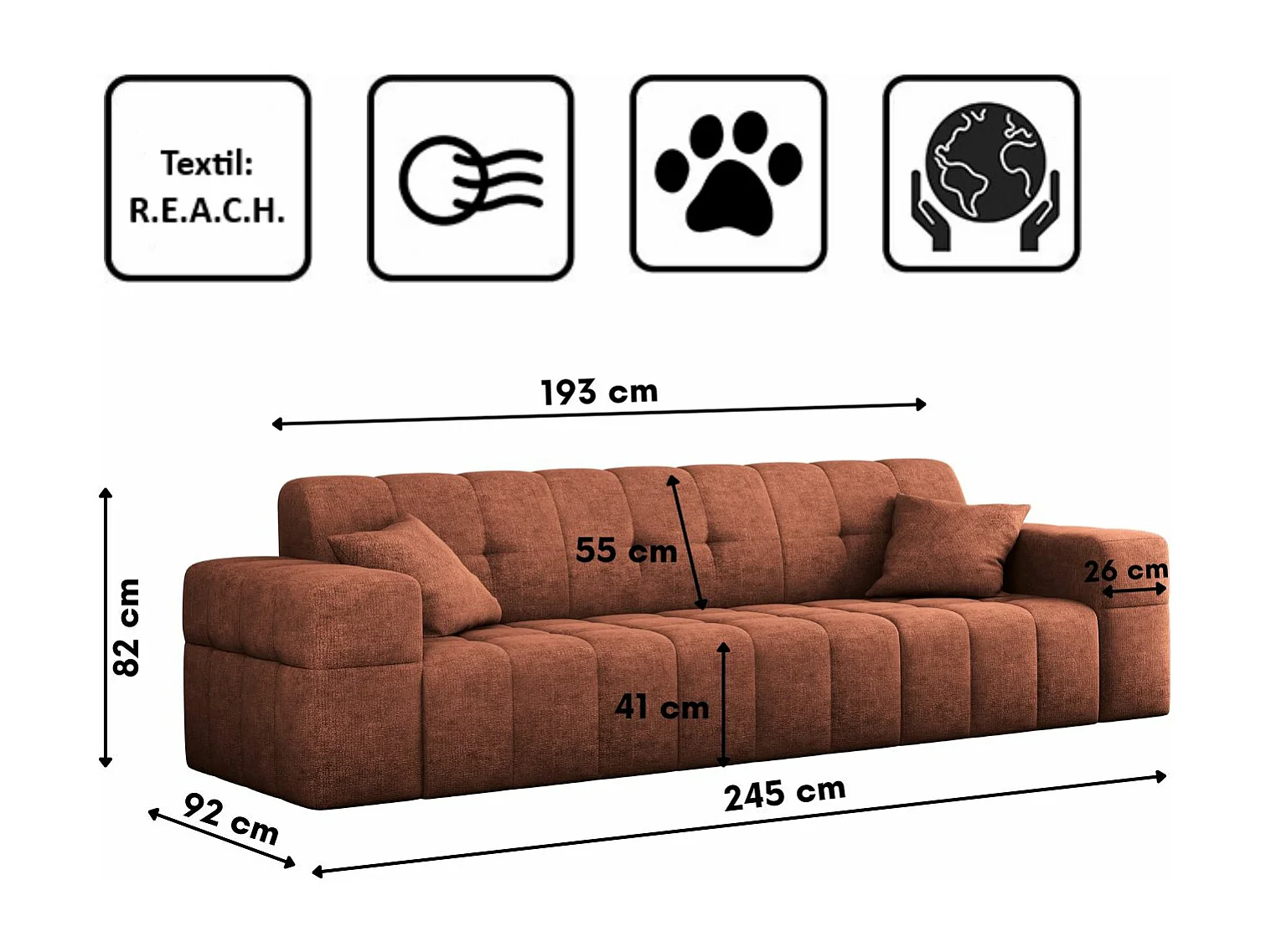 Canapé 3 places série Canapé NIMES tissu élégant Perfect Harmony Copper
