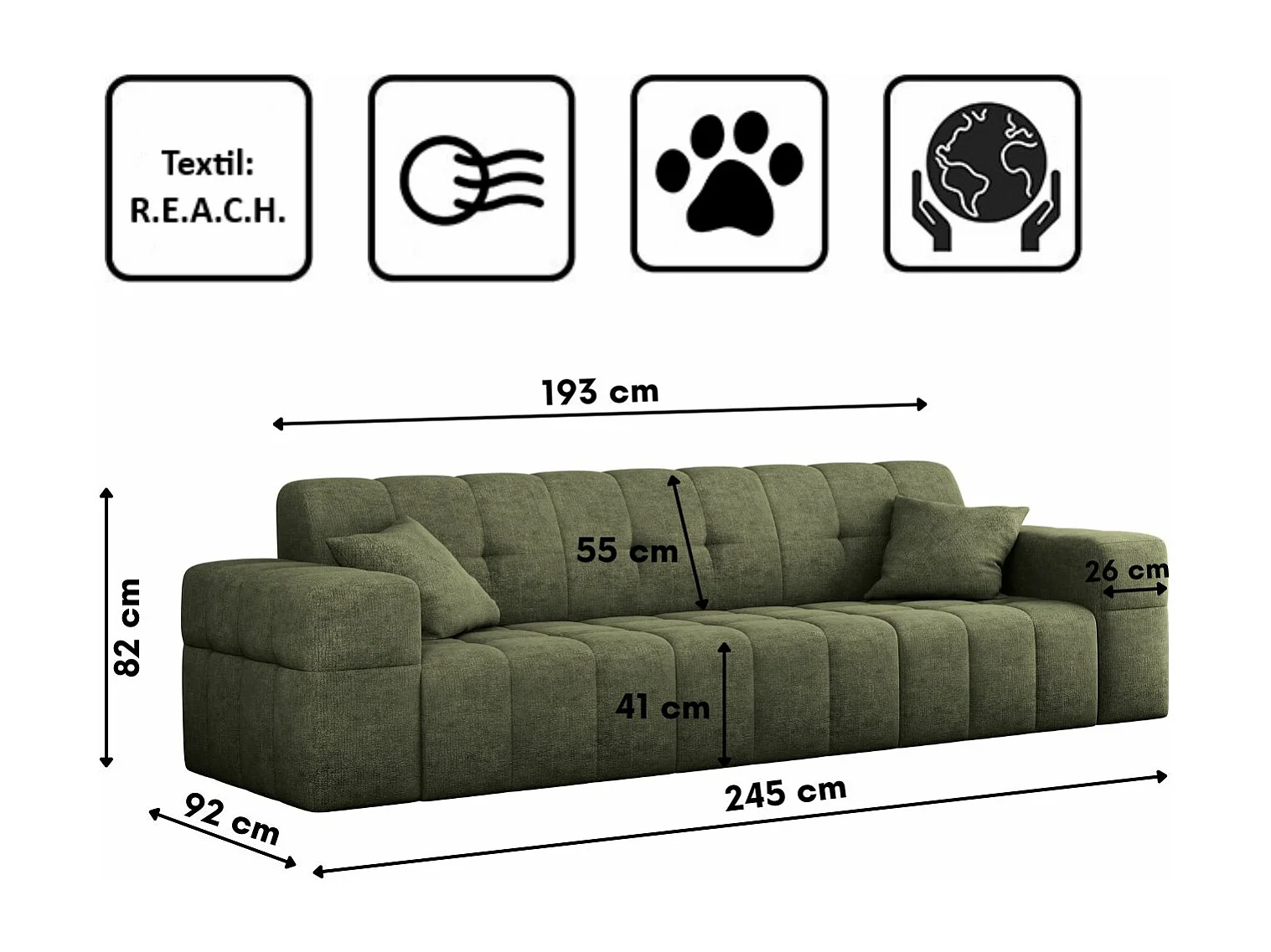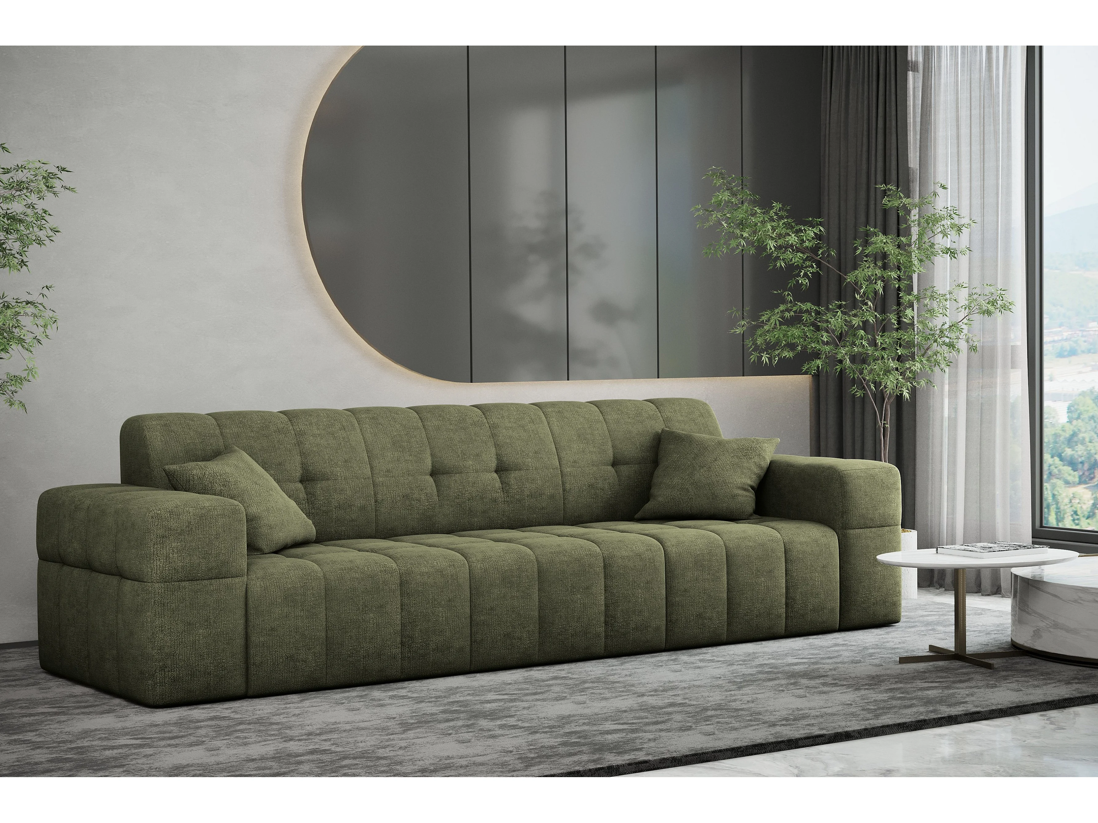 Sofa 3-Sitzer, Komfort Couch BALOO, stoff Schenille, Olive