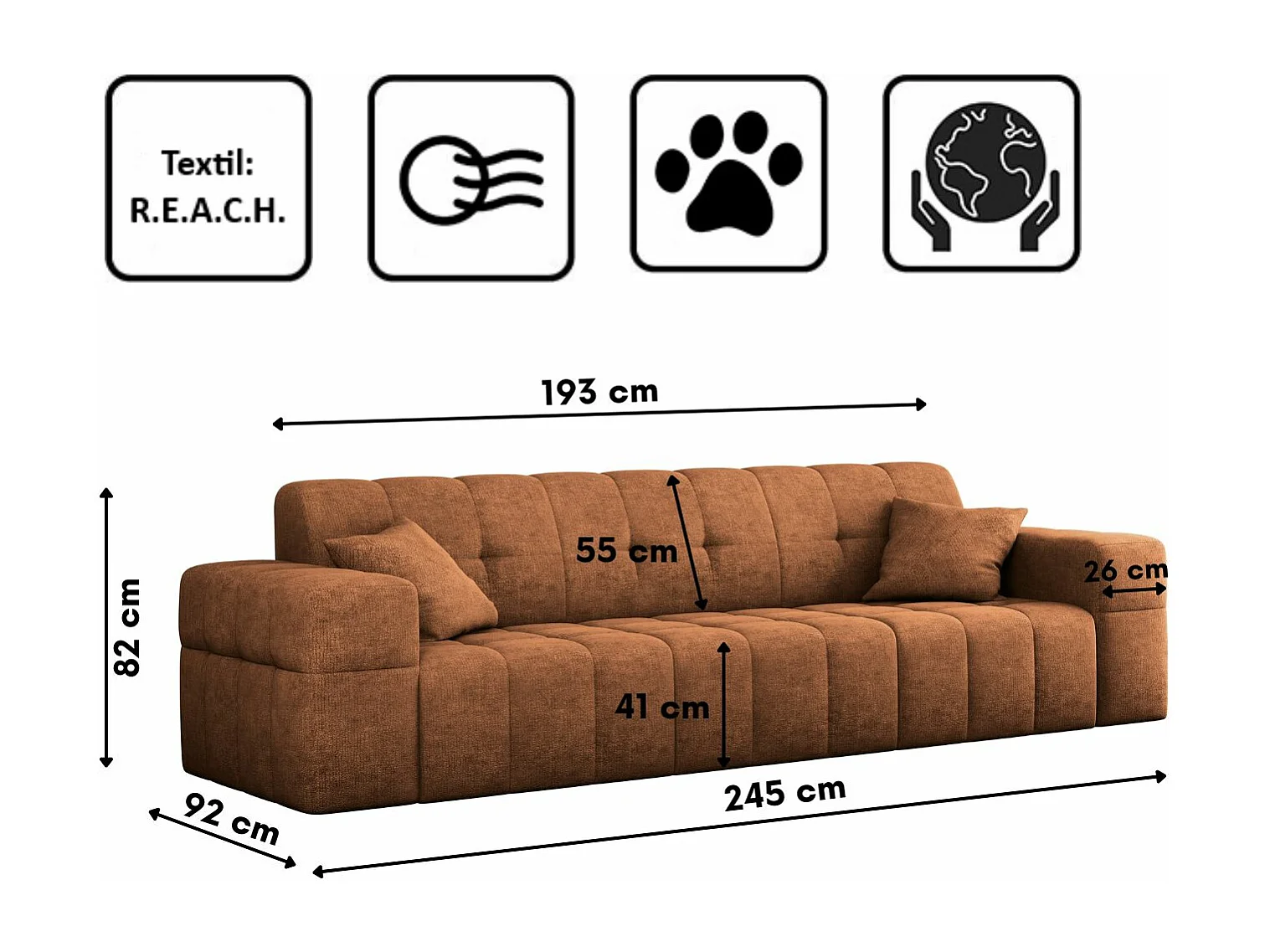 Sofa 3-Sitzer, Komfort Couch BALOO, stoff Schenille, Orange