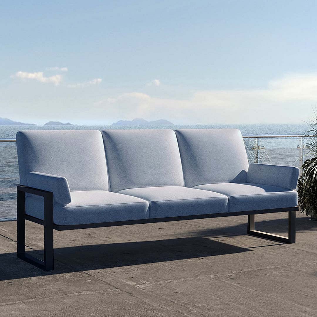Canapé 3 places Soledo Bleu clair - Cadre anthracite
