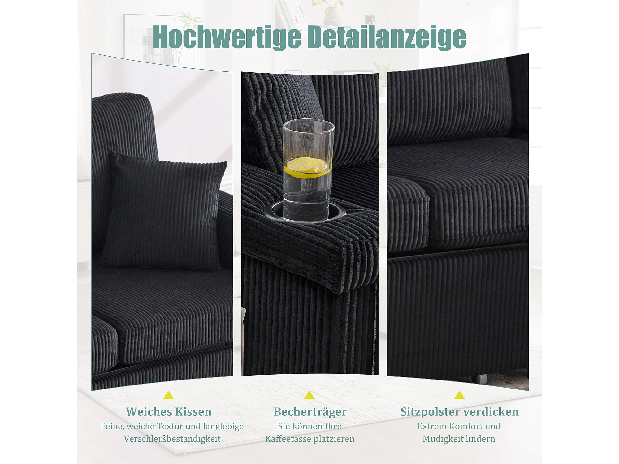 Canapé 4 places - 194 x 73 x 81 cm - avec Leds + USB + repose-pieds avec rangement + 2 tiroirs - Velours - noir