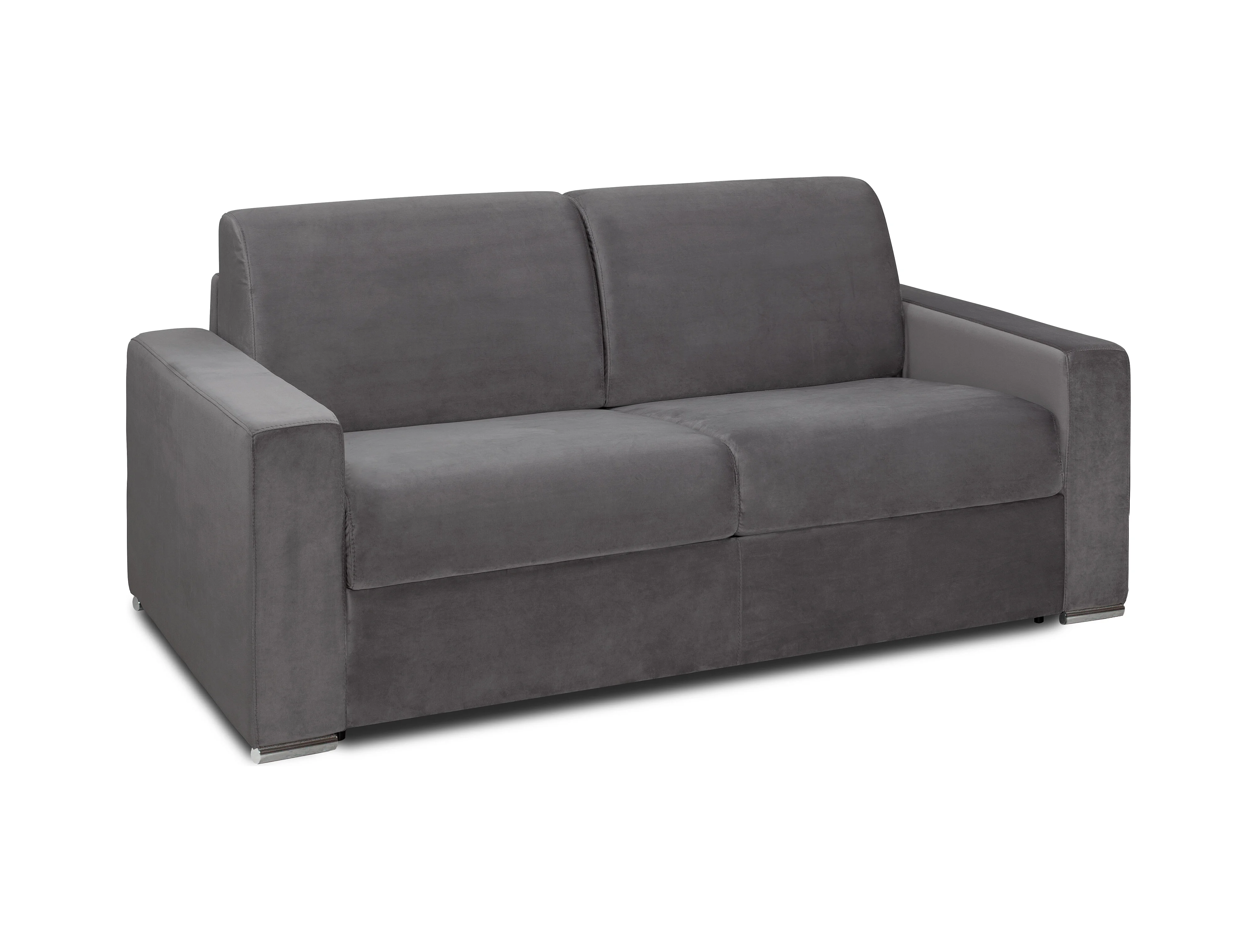 Canapé 4 places convertible express en velours anthracite - Couchage 160 cm - Matelas 14 cm CALITO