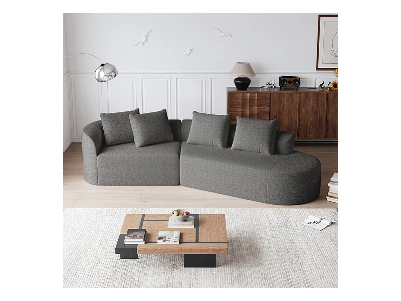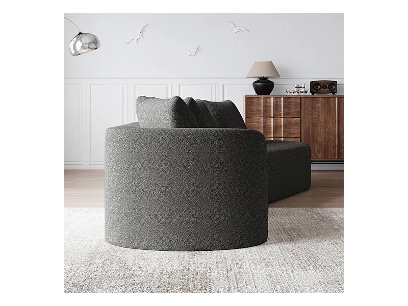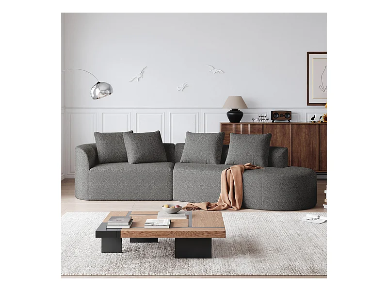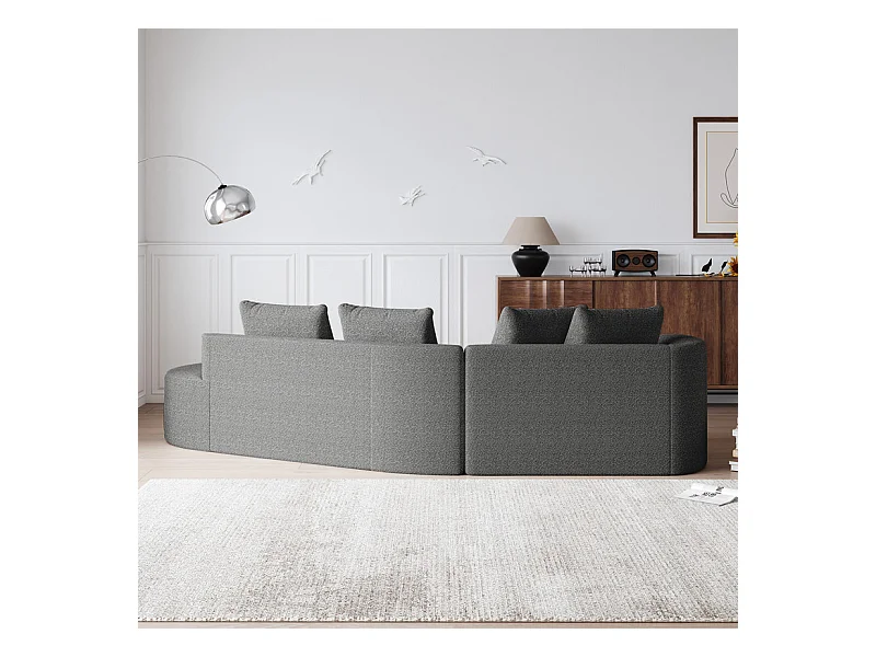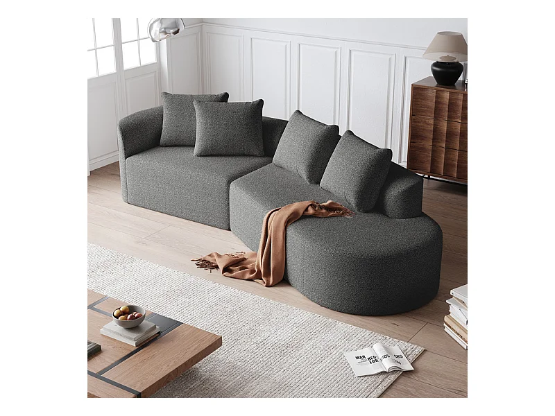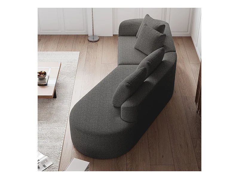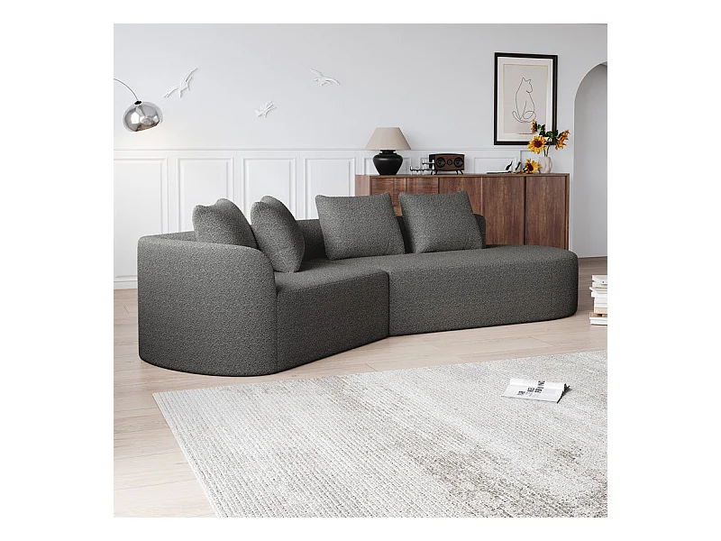 Canapé 4 places d'angle droit moderne surdimensionné, avec 4 oreillers, méridienne incurvé, tissu chenille, Gris anthracite