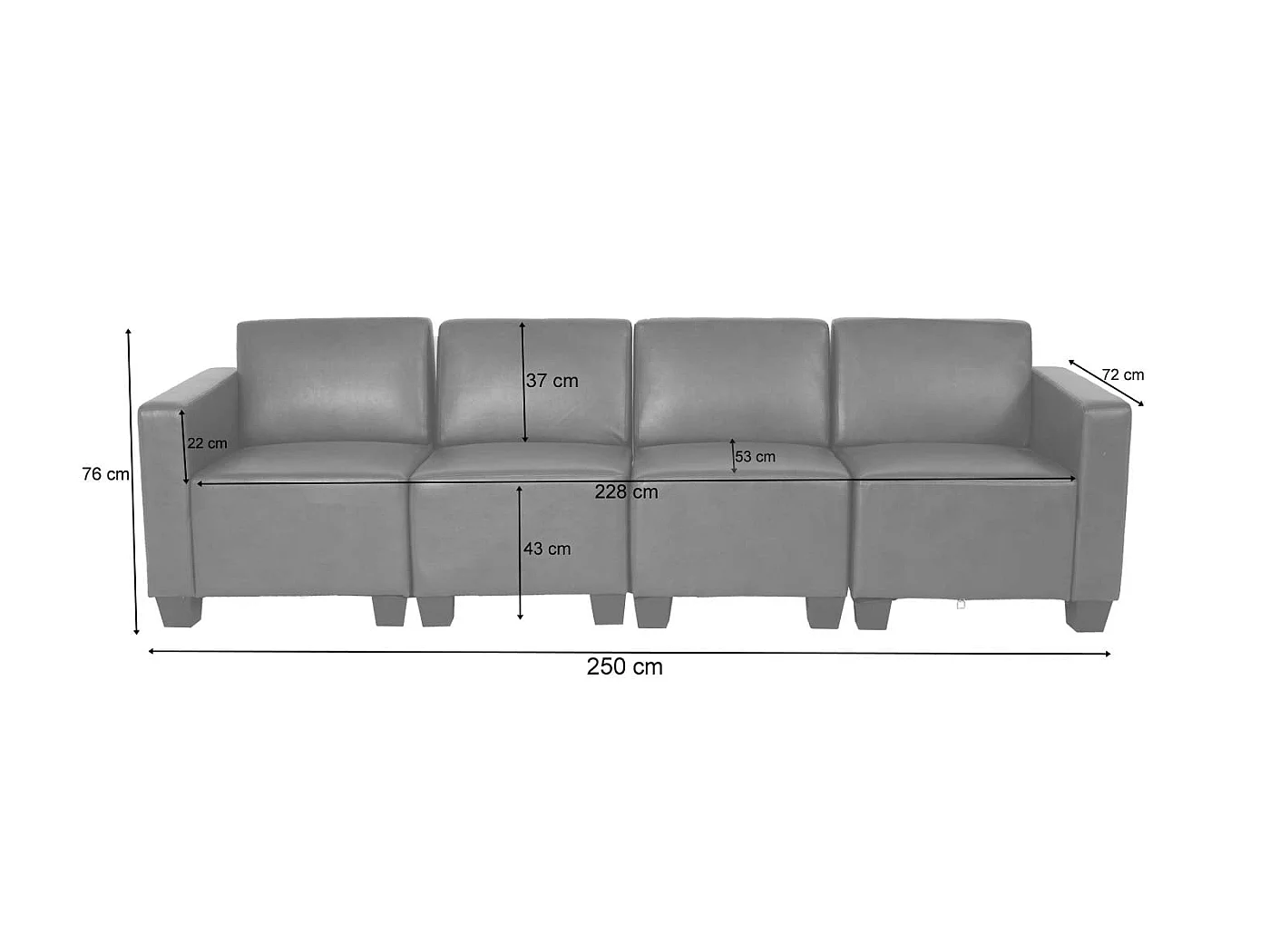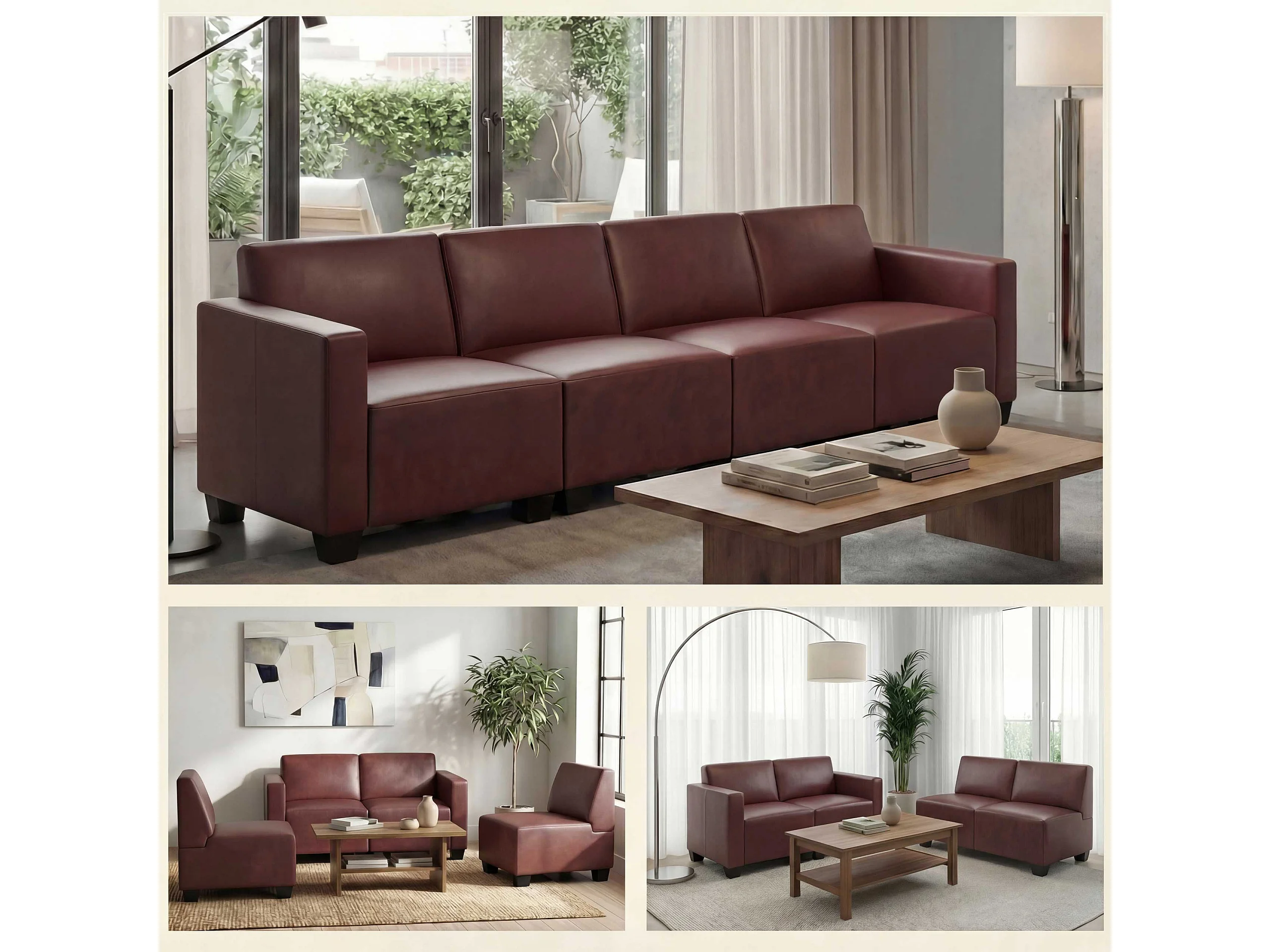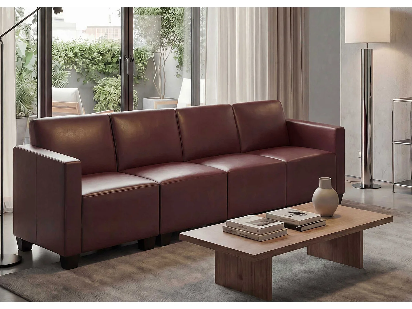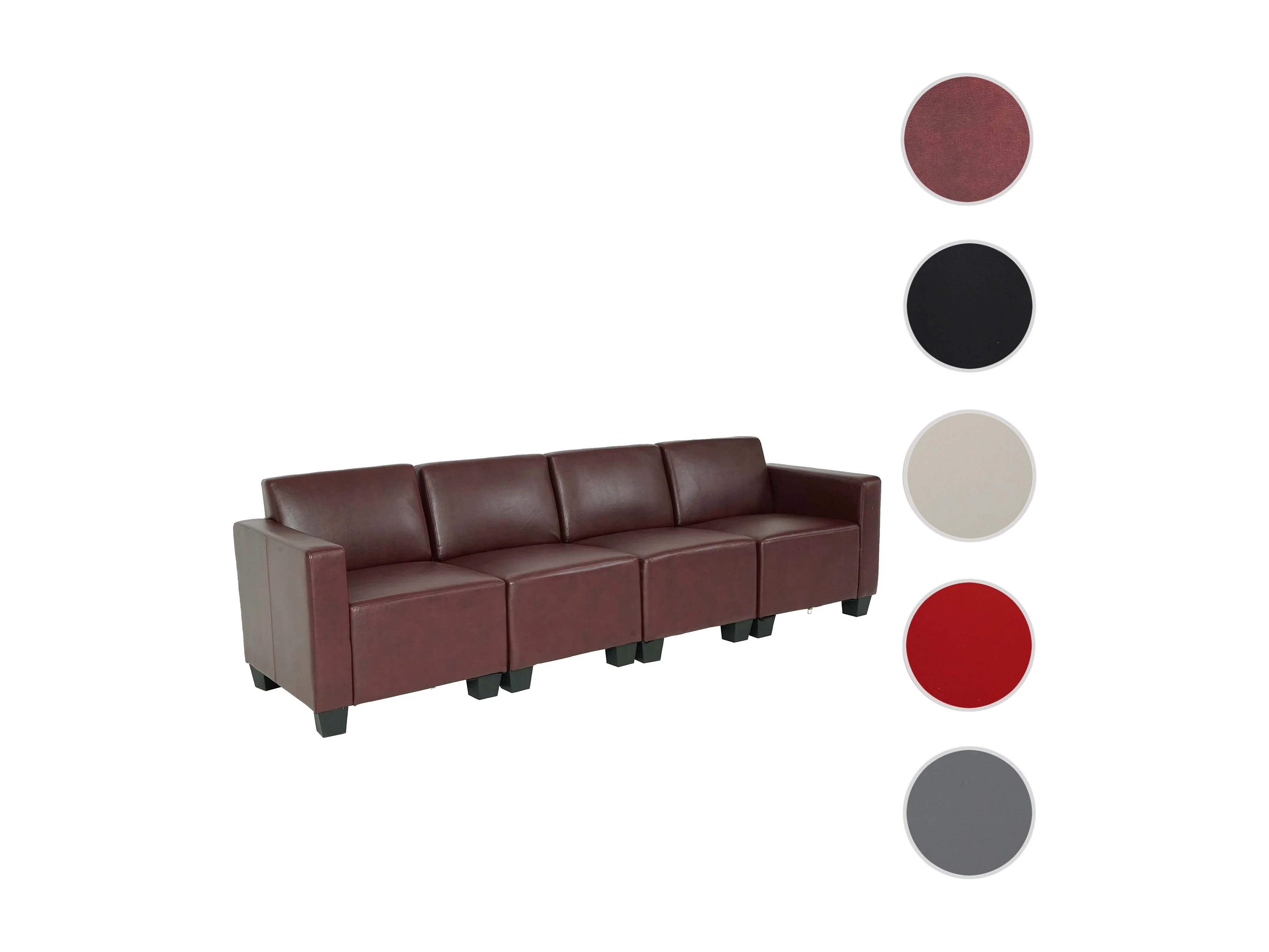 Canapé 4 places Moncalieri, rouge-marron
