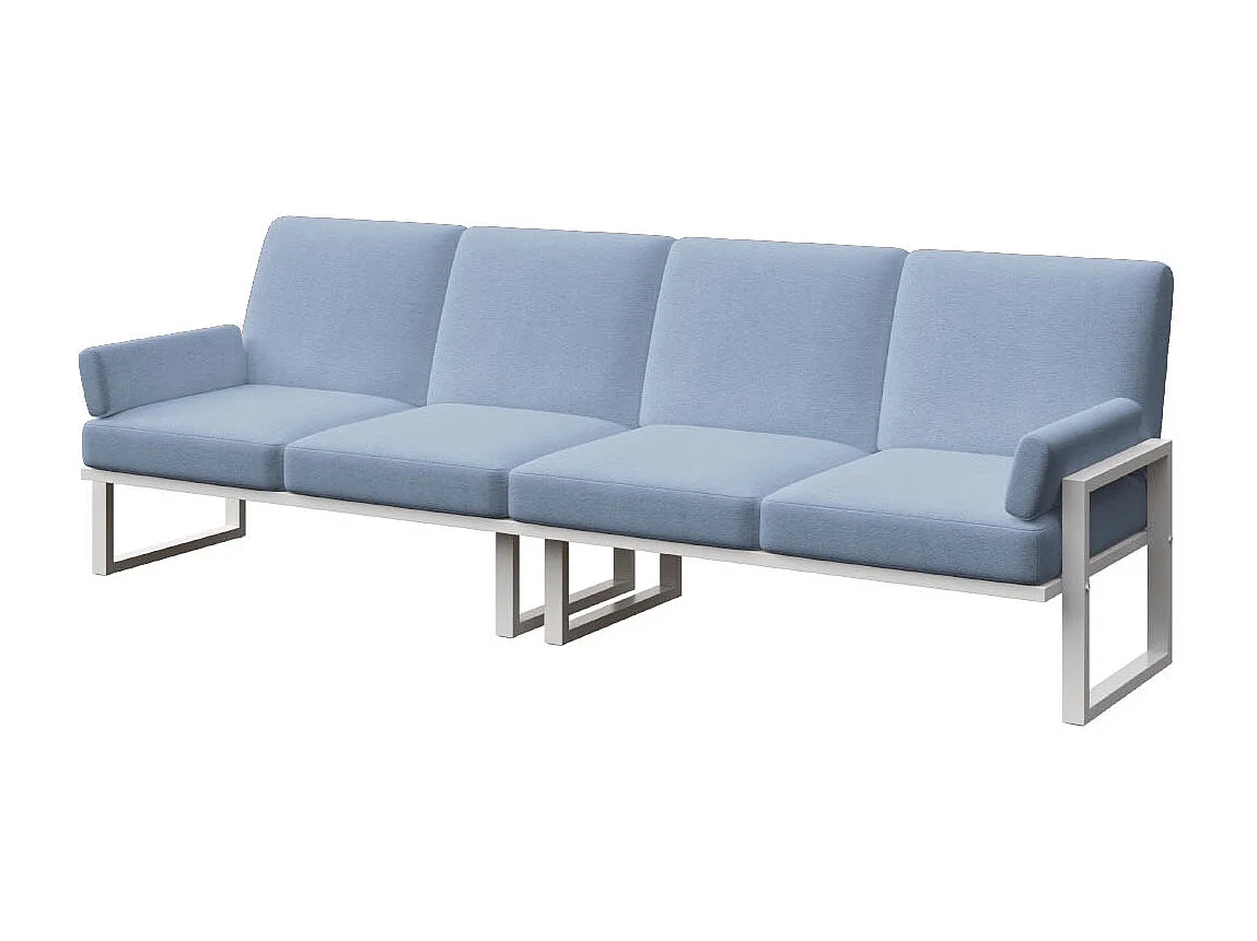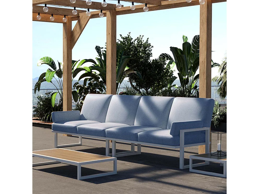 Canapé 4 places Soledo Bleu clair - Cadre blanc