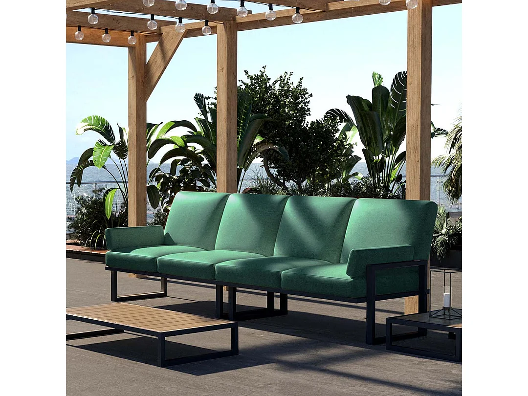 Canapé 4 places Soledo Vert profond - Cadre Anthracite