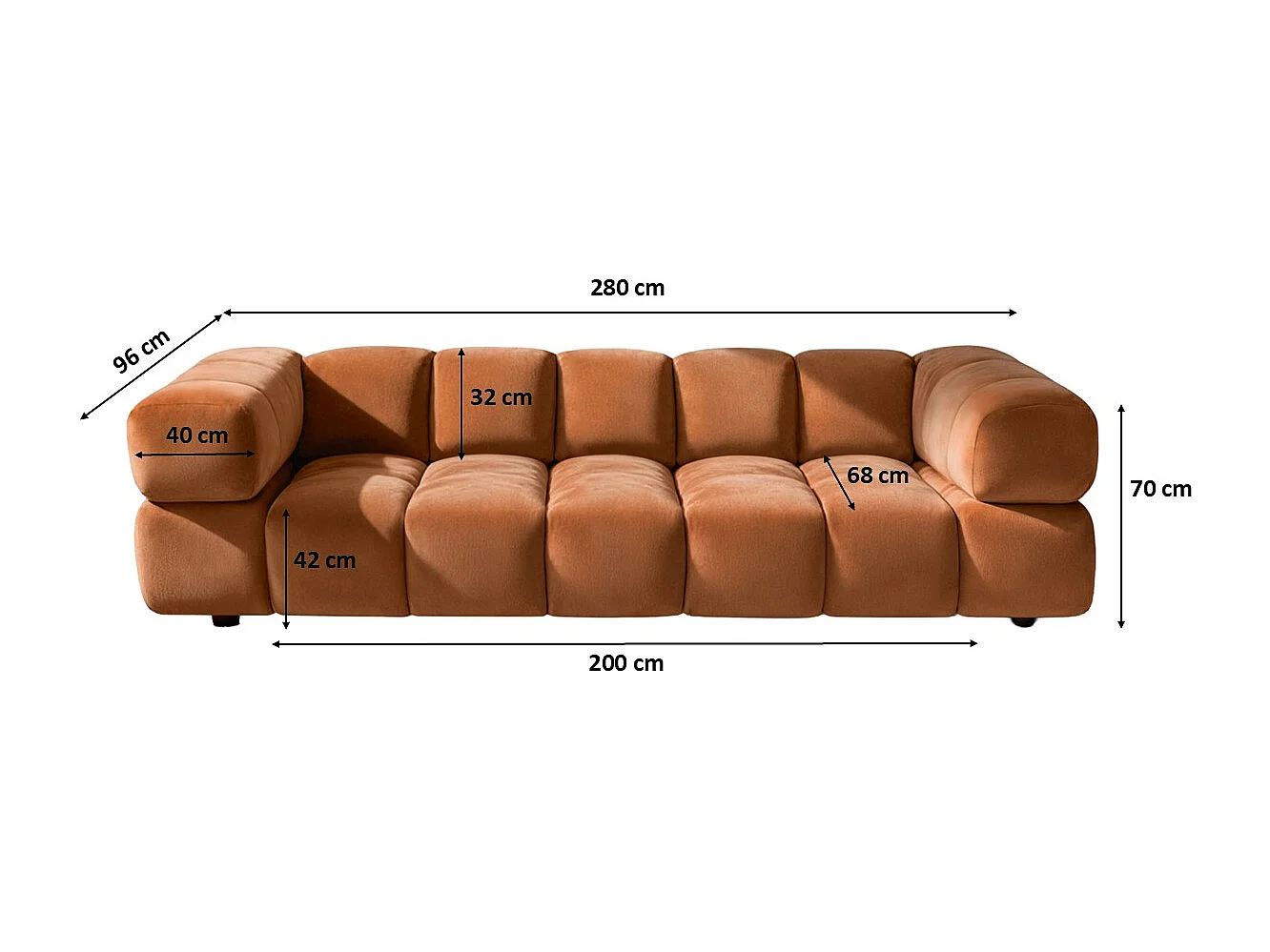 Canapé 4 places, Velours Bluvel, Cannelle, Averro