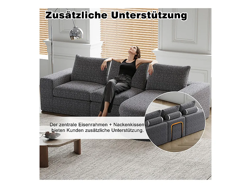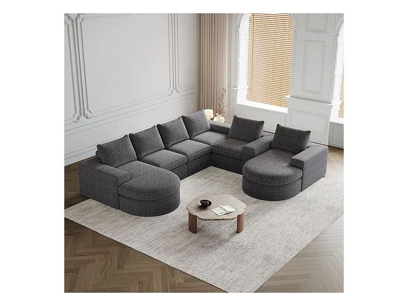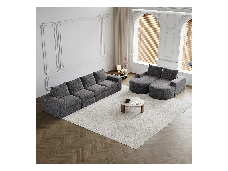 Canapé 6 places d'angle réversible modulable, avec 6 oreillers et oreillers cervicaux, en tissu chenille, DIY salon, Gris