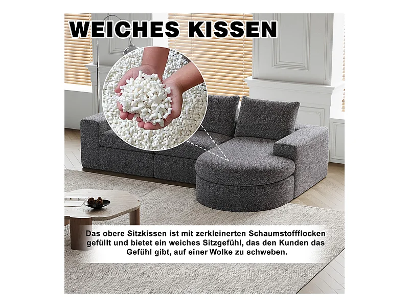 Canapé d’angle modulaire Cursal E – 364 x 166 cm,gris clair Raven 6 , design moderne
