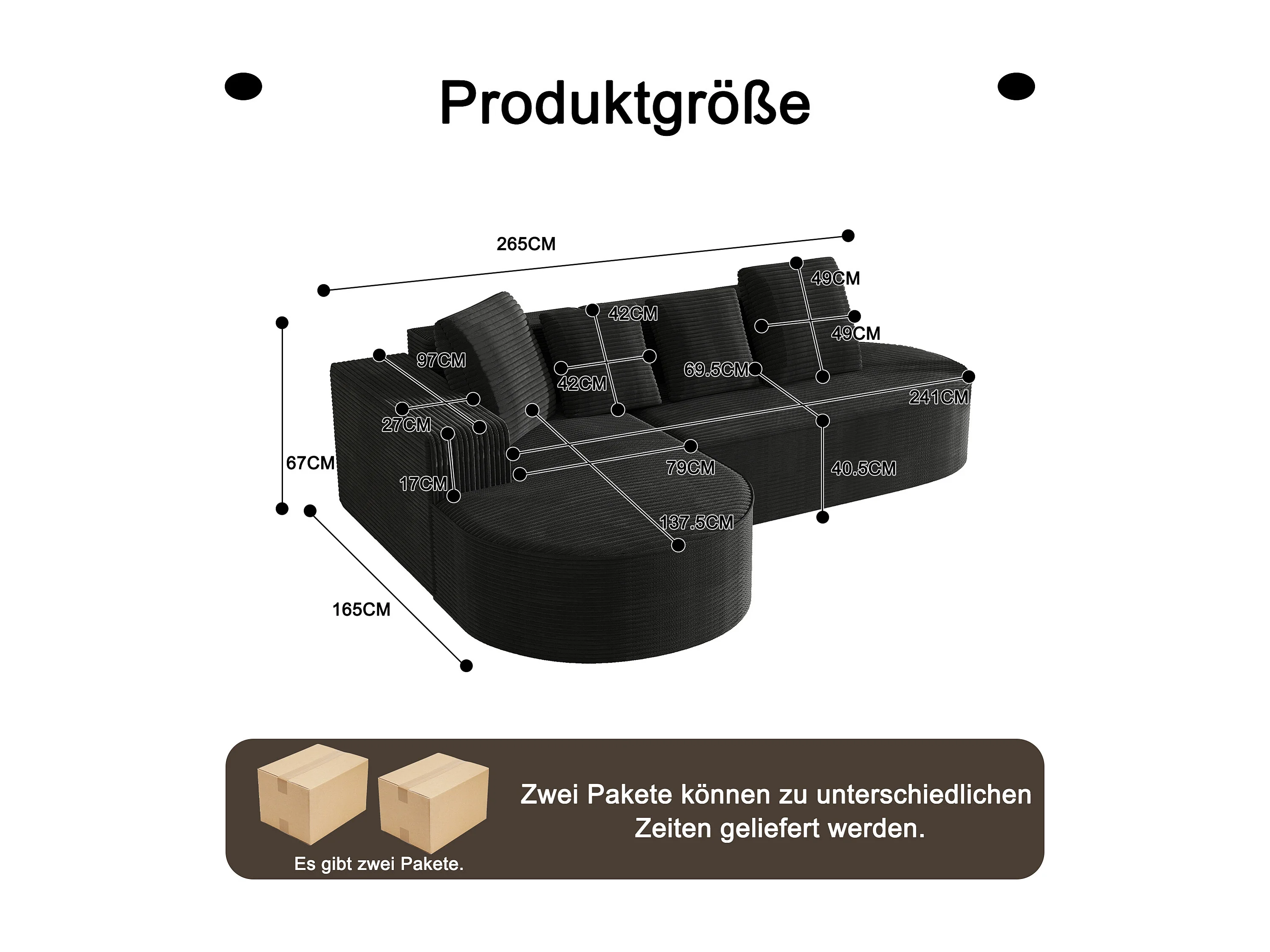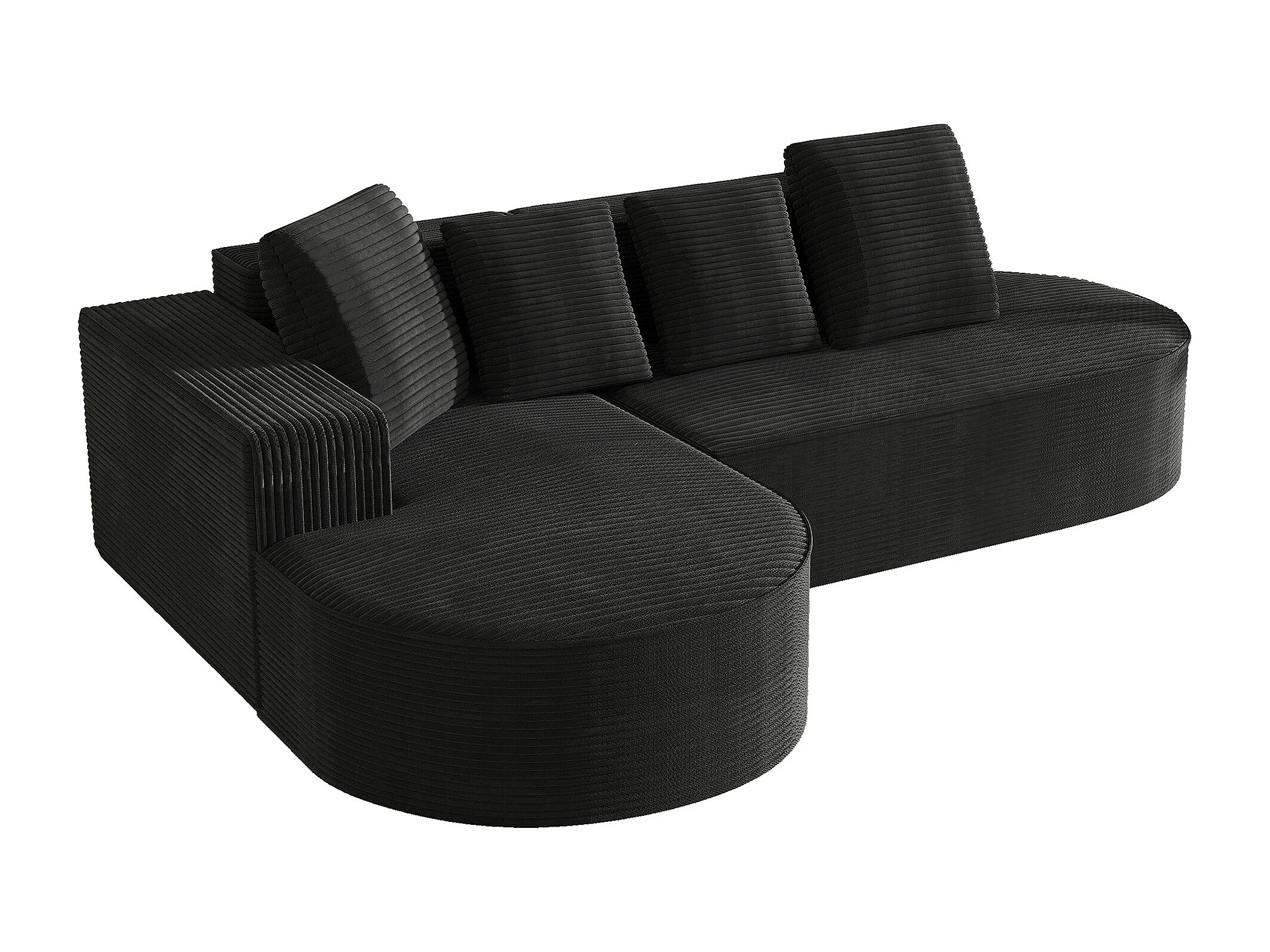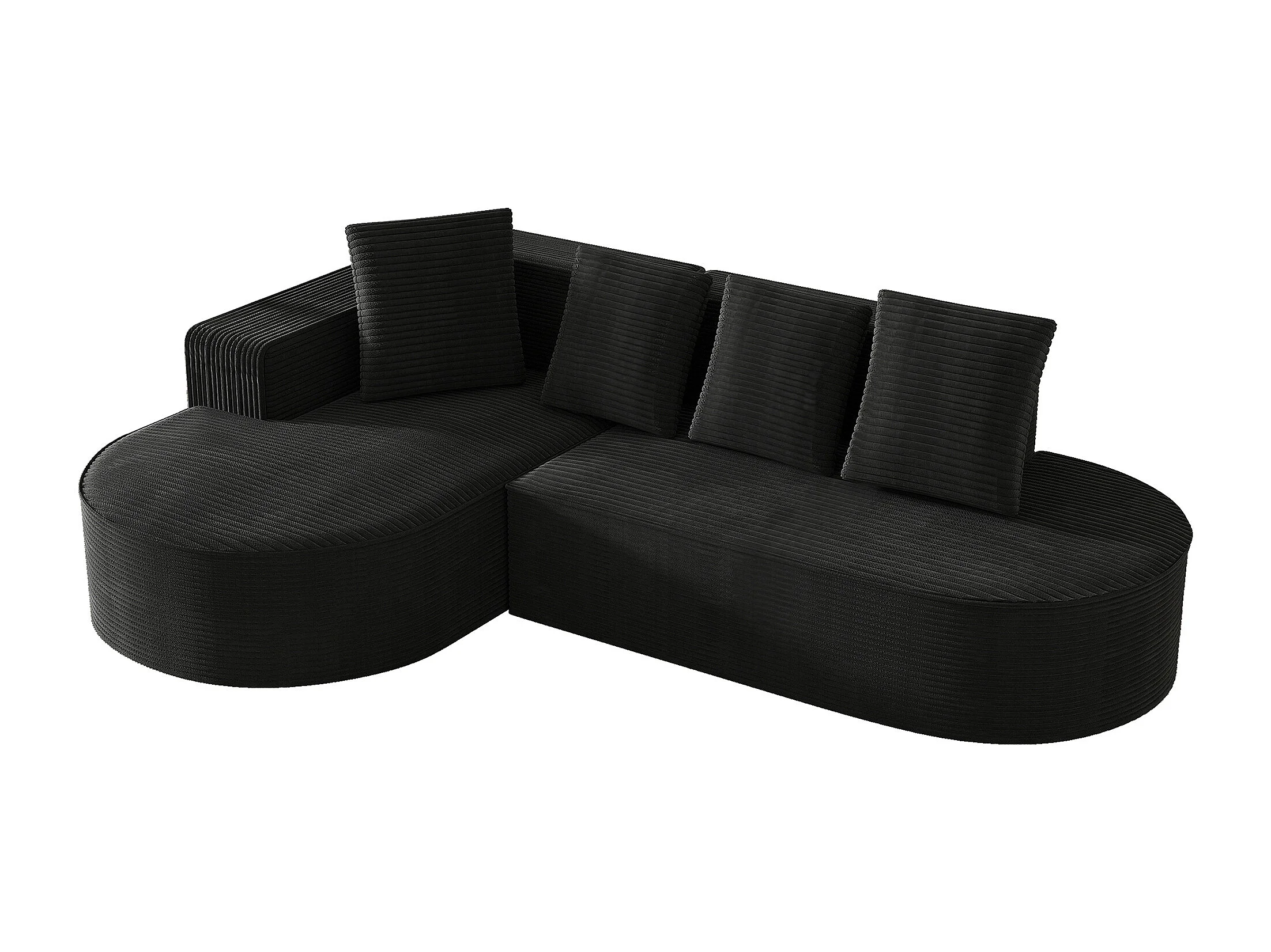Canapé d angle 265x165x67 cm, sans montage, assise profonde, rembourrage mousse haute densité, velours côtelé noir