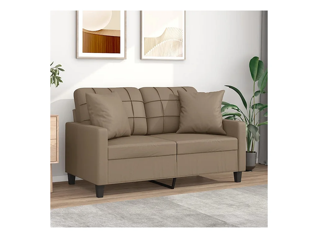 Canapé 2 places avec oreillers cappuccino 120 cm similicuir