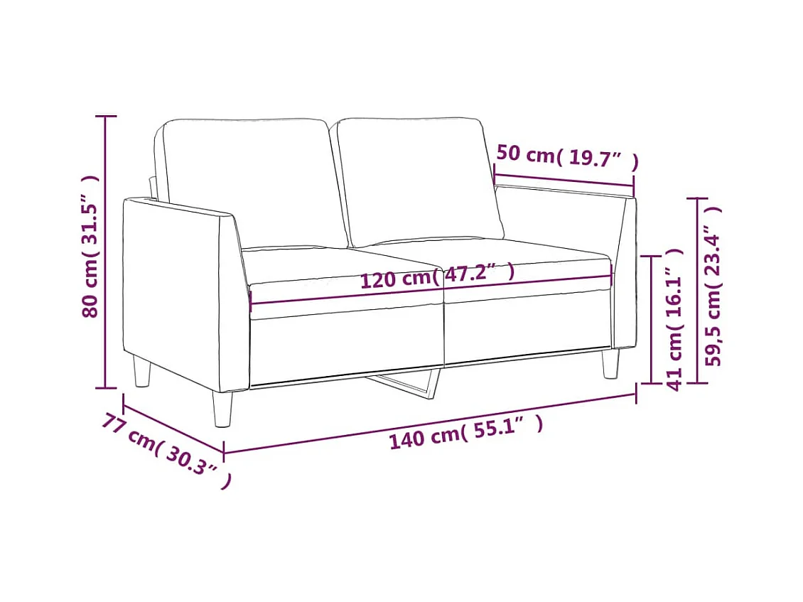 Canapé à 2 places Cappuccino 140 cm Similicuir