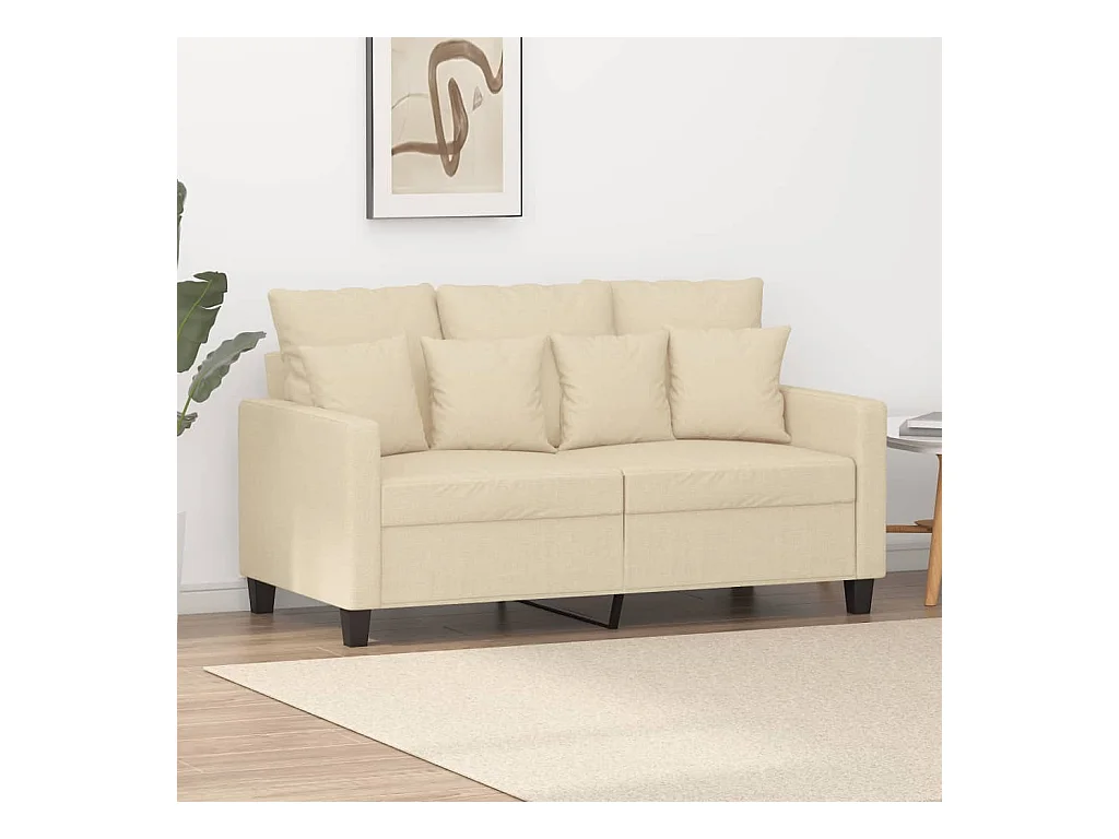Canapé 2 places avec oreillers décoratifs crème 120 cm tissu