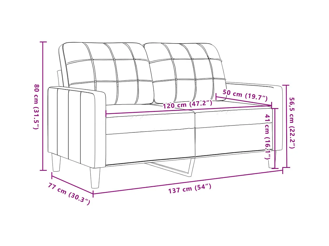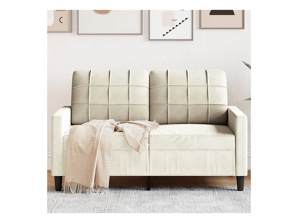 Canapé 2 places avec oreillers décoratifs crème 120 cm velours