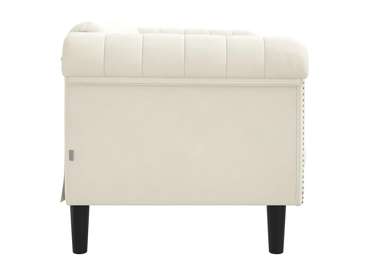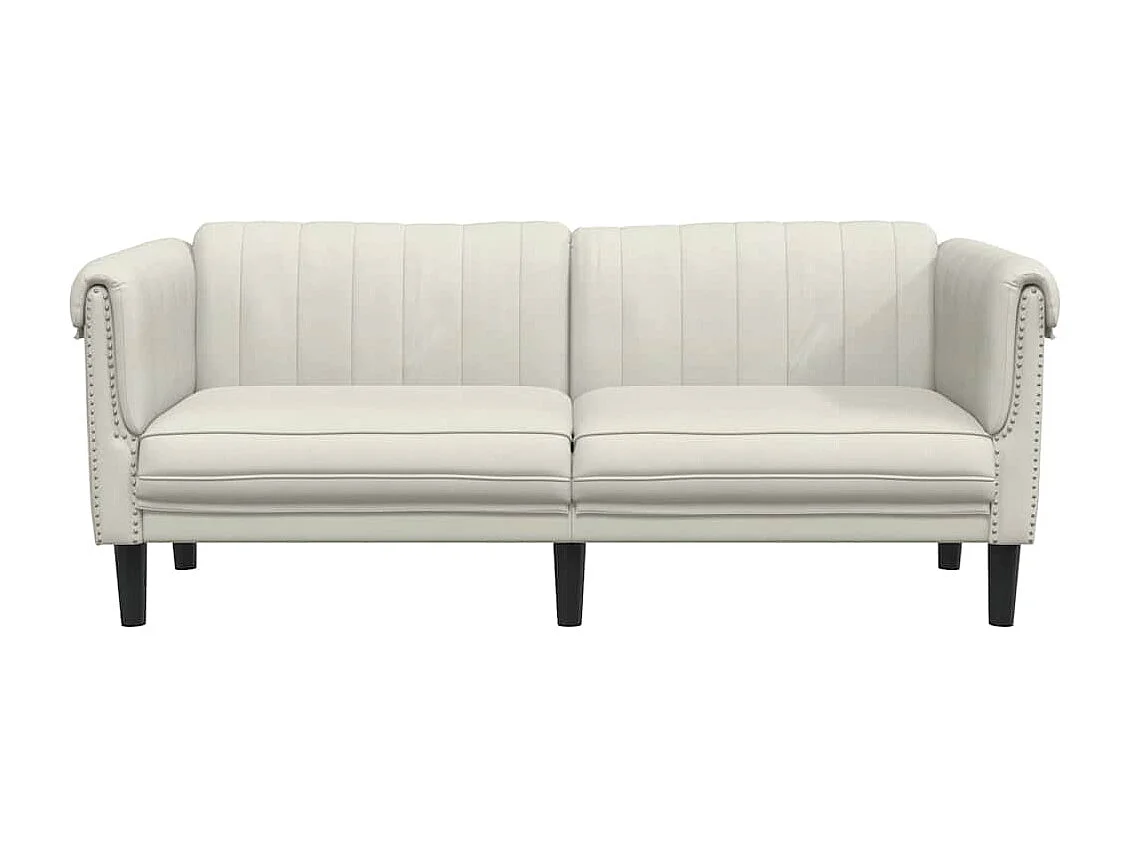 Canapé droit en velours beige - Canapé relaxation avec fonction gigogne et dossier réglable - dossier et accoudoirs