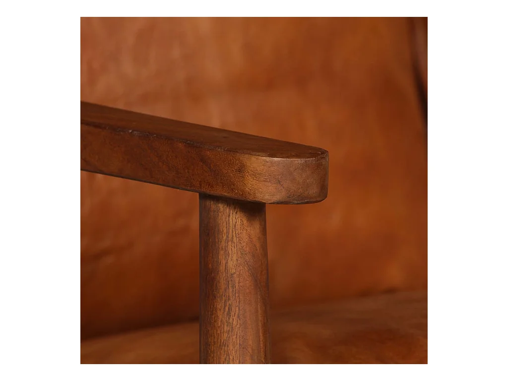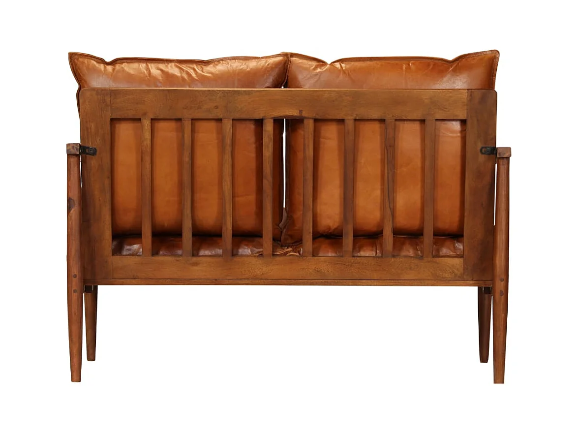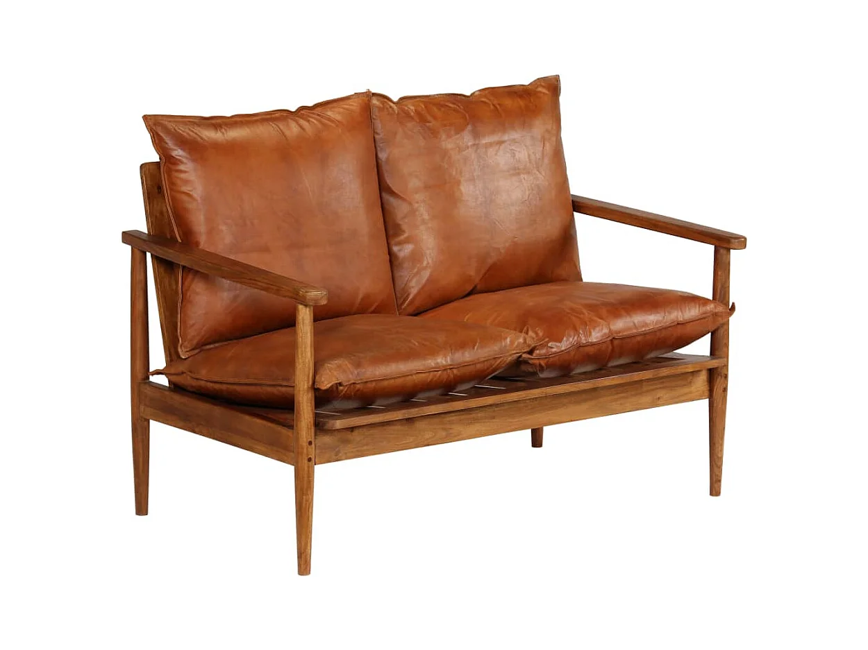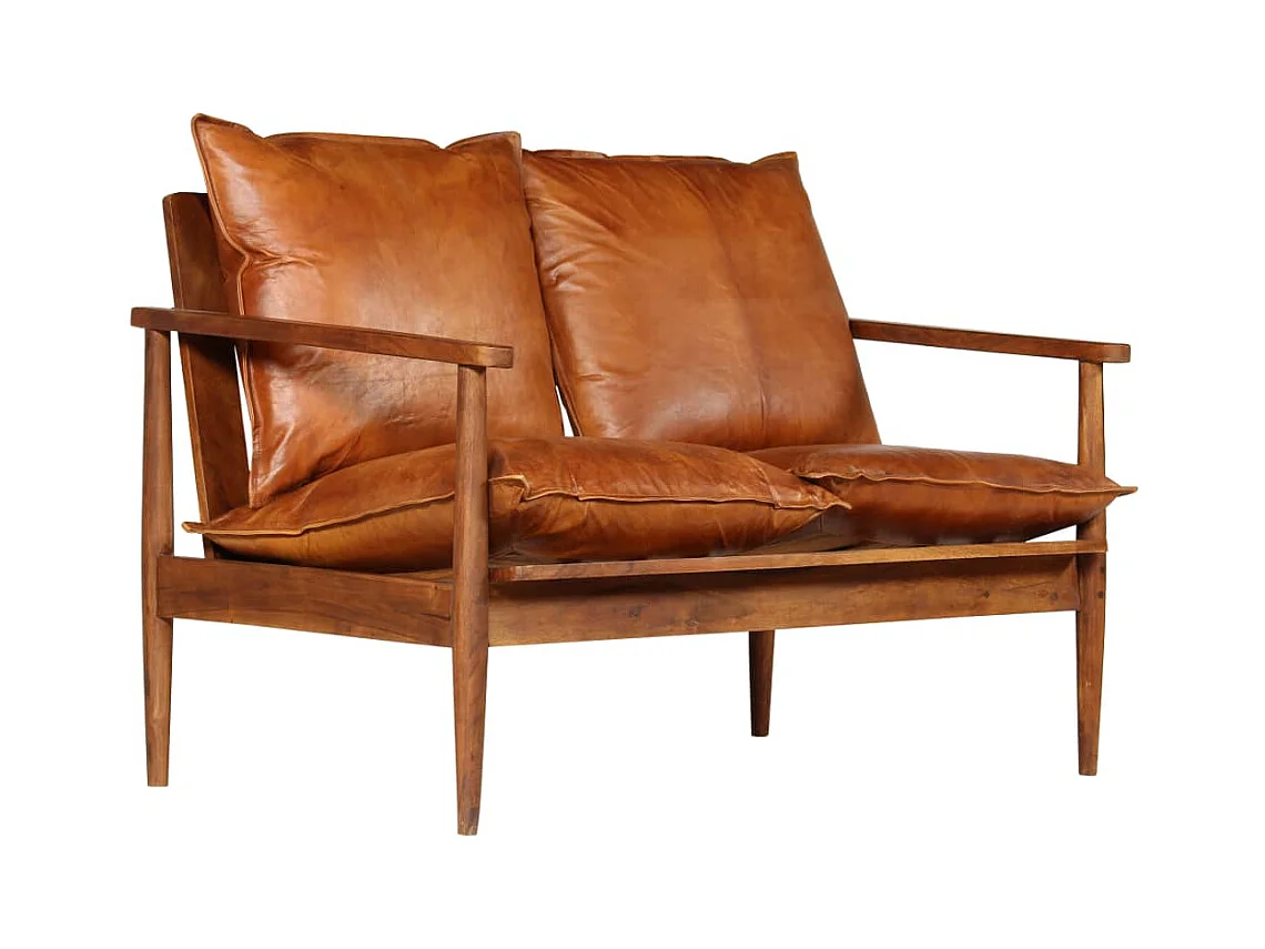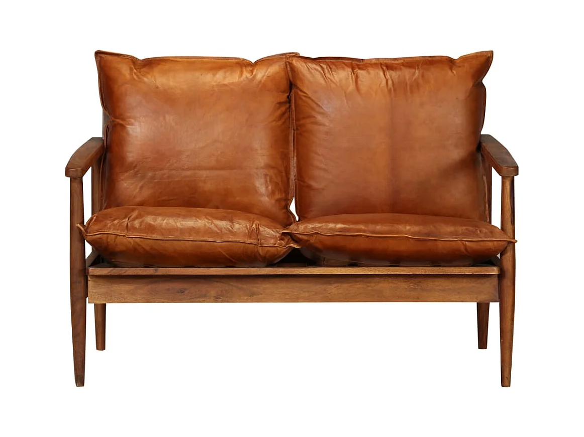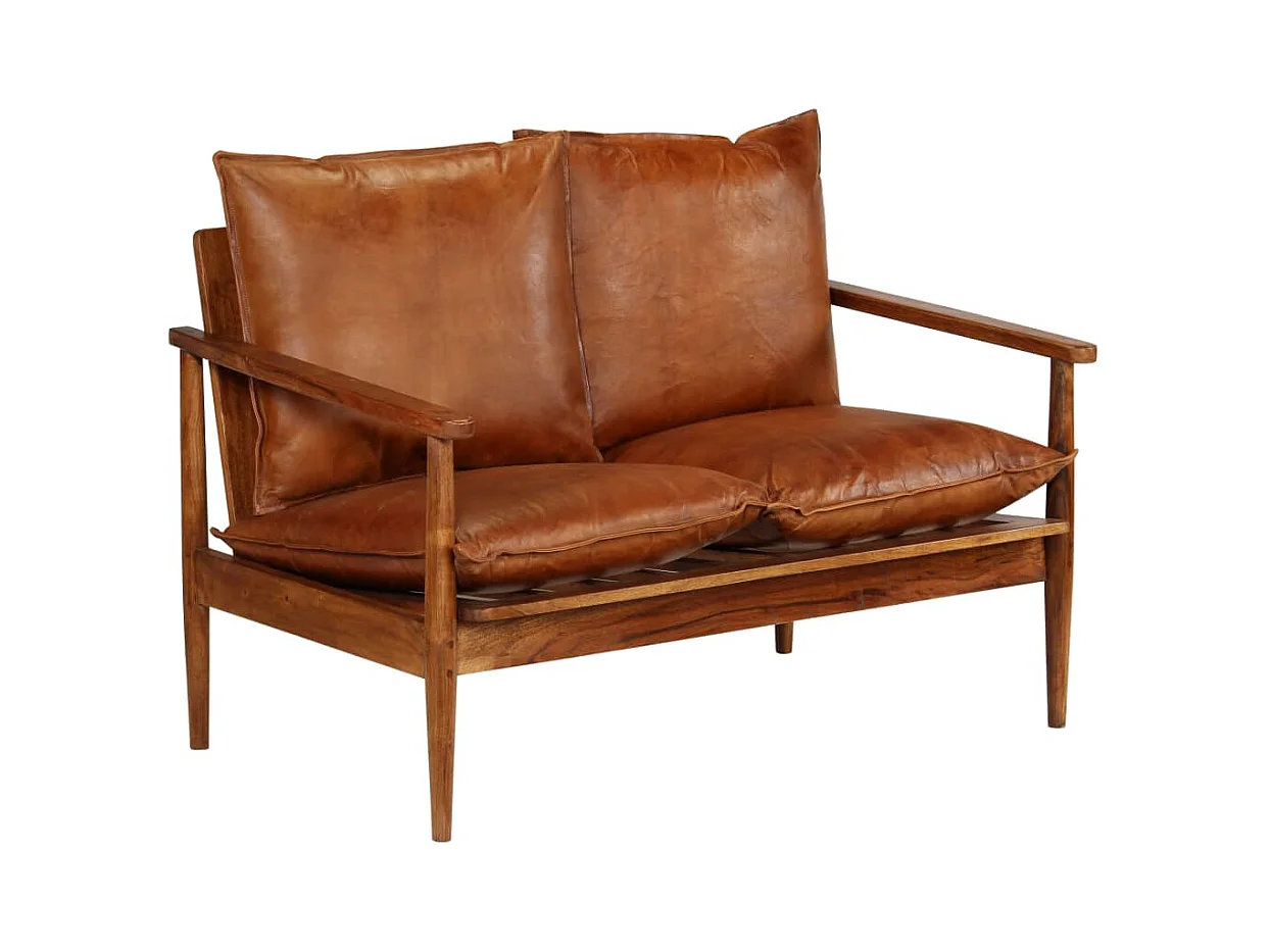 Canapé à 2 places Cuir véritable avec bois d'acacia Marron