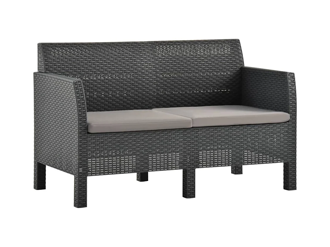 Canapé à 2 places de jardin avec coussins Anthracite PP Rotin