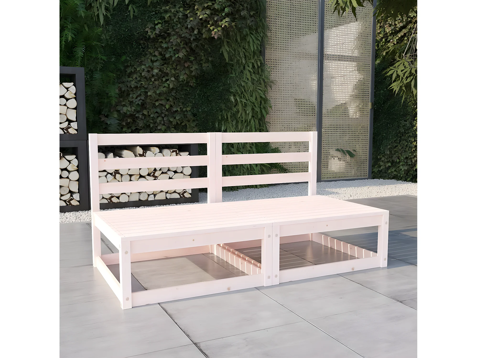 Canapés de jardin sans accoudoirs 2 pcs blanc bois pin massif