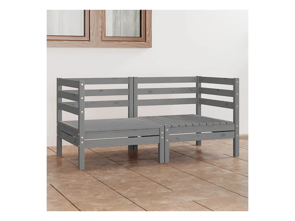 Canapé à 2 places de jardin Gris Bois de pin solide