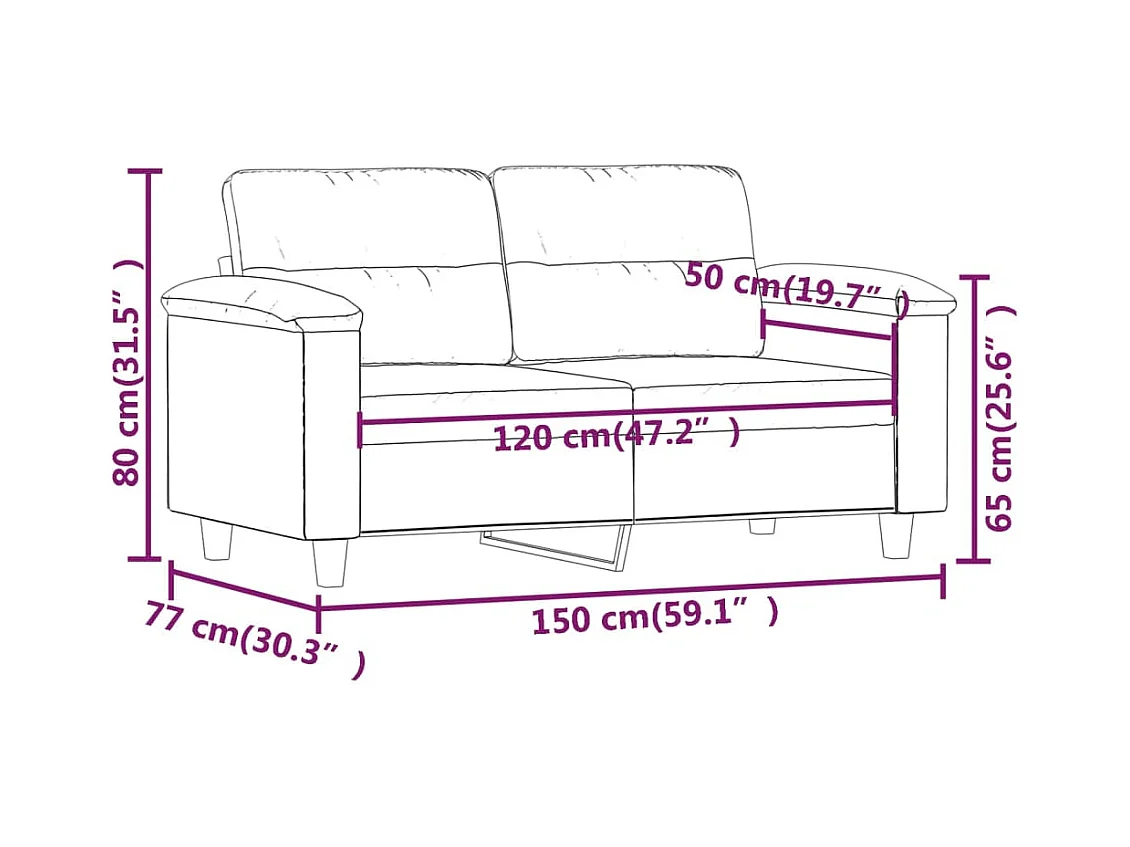 Canapé à 2 places Gris foncé 140 cm Tissu microfibre