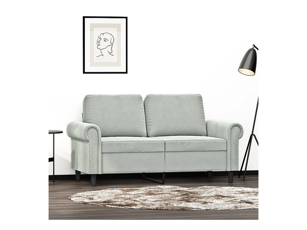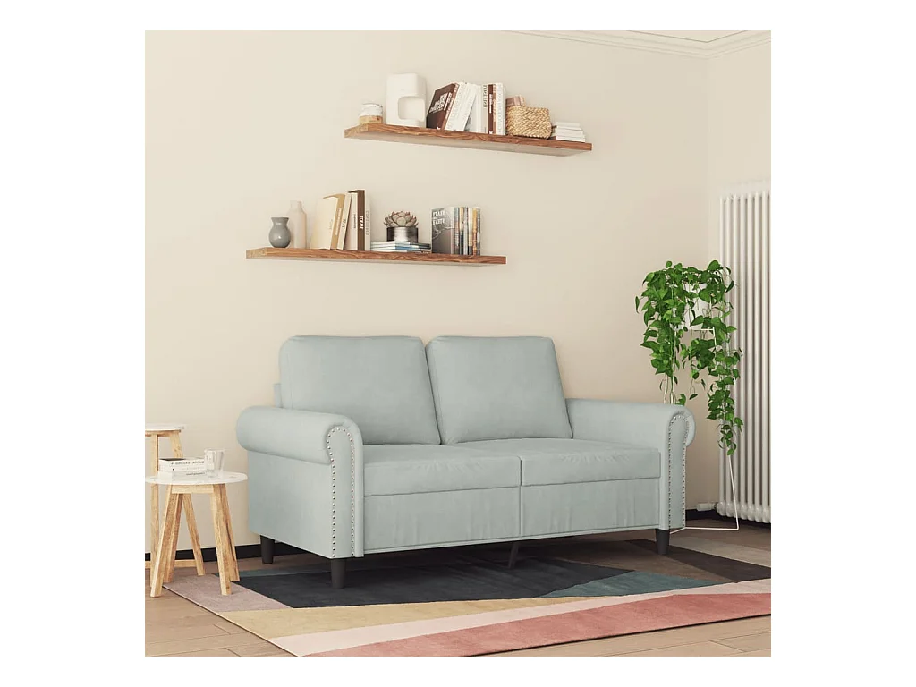 Canapé 2 places avec oreillers gris clair 120 cm velours