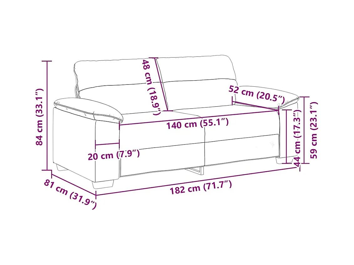 Sofa à 2 places avec accoudoirs Gris foncé Acier et tissu