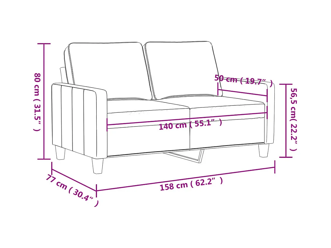 Canapé à 2 places Gris foncé 140 cm Tissu