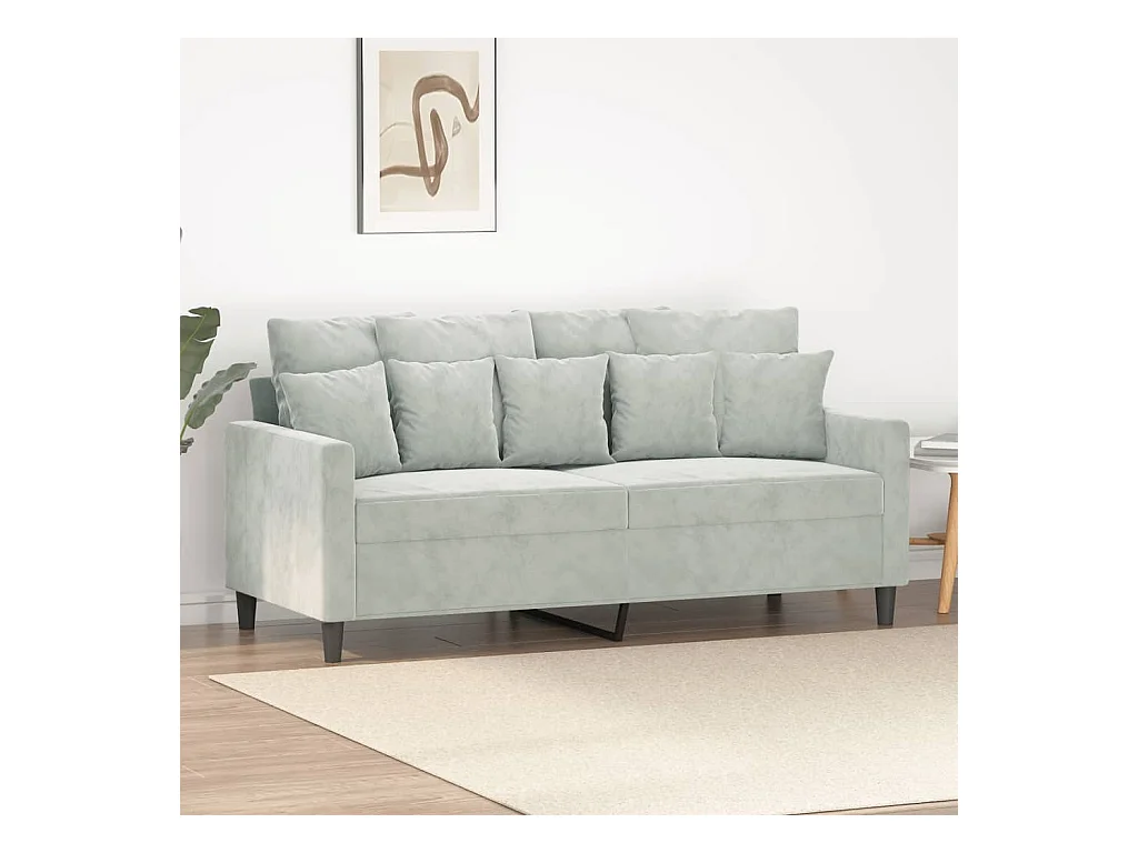 Canapé 2 places avec oreillers gris clair 140 cm velours REO75648