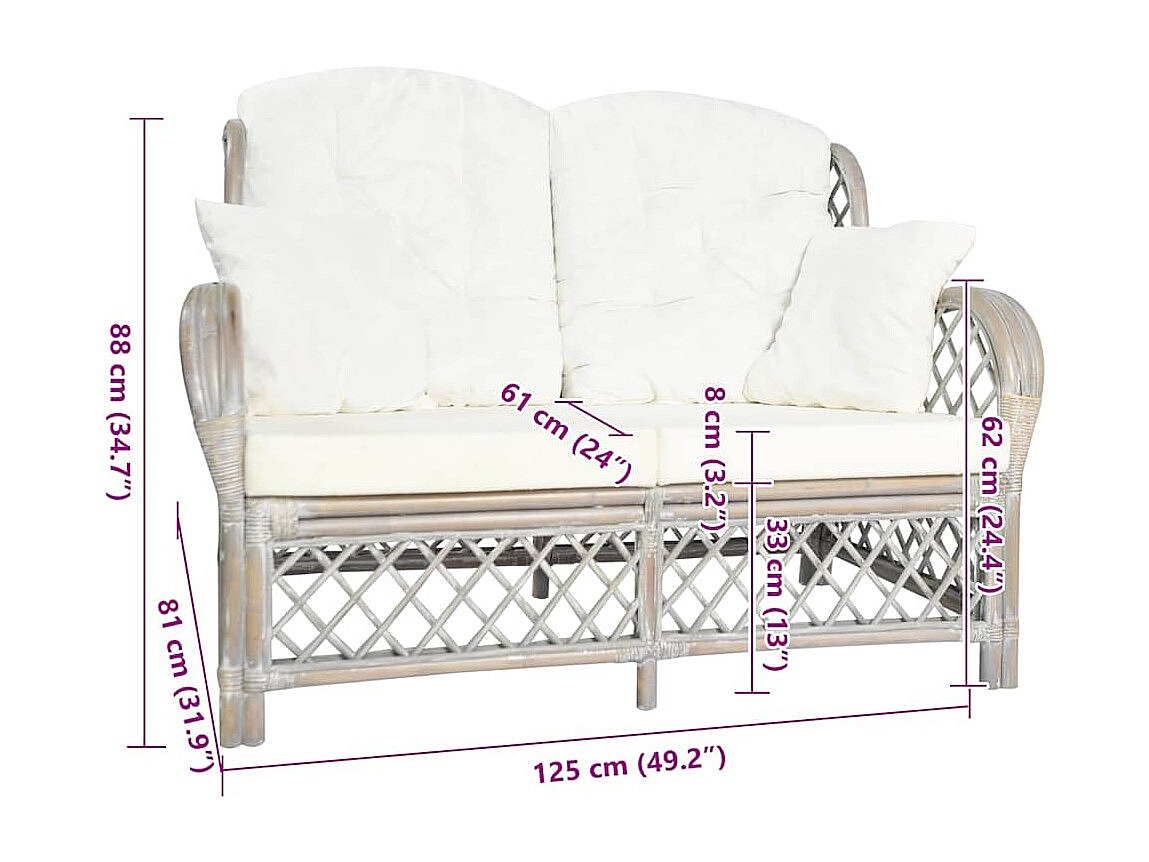 Canapé à 2 places Gris Rotin