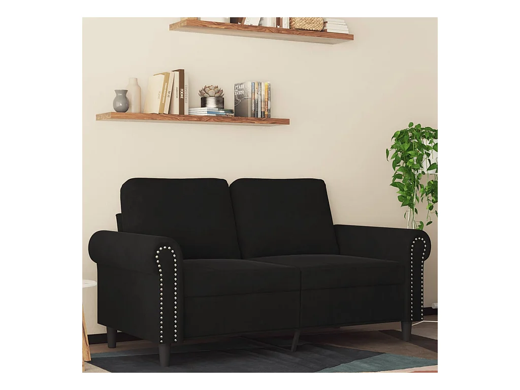 Canapé 2 places avec oreillers décoratifs noir 120 cm velours