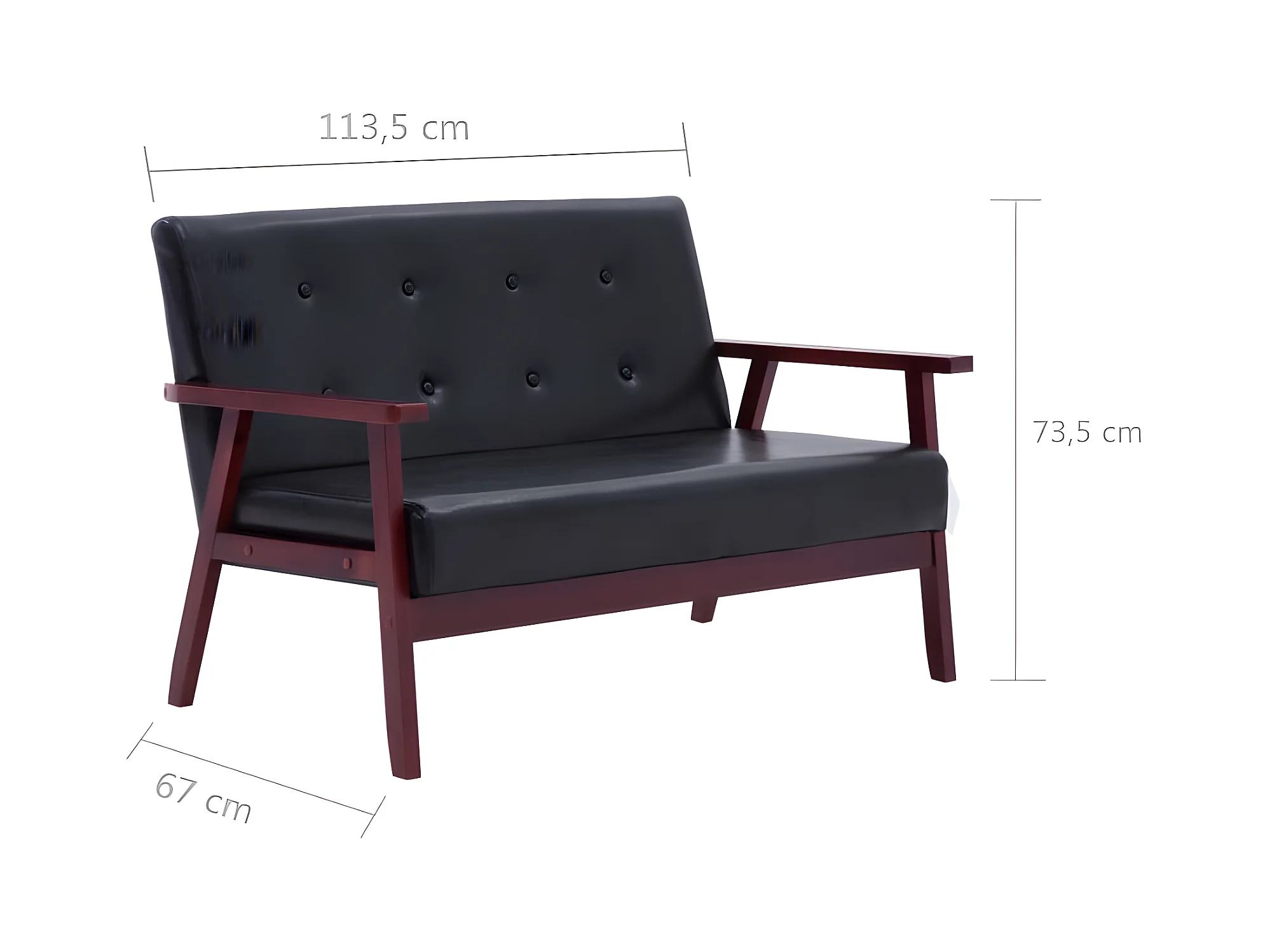 Canapé 3 places Moncalieri, noir, sans accoudoirs