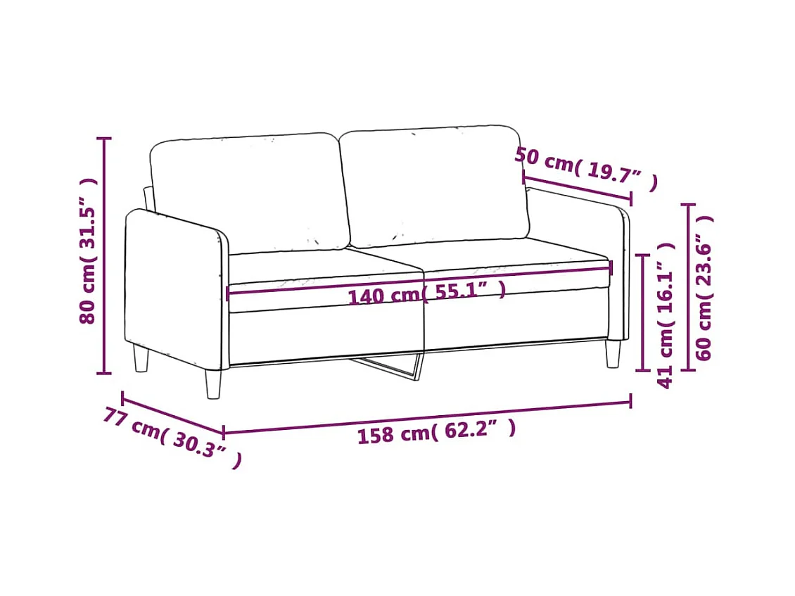 Canapé à 2 places Rose 140 cm Velours FR519554
