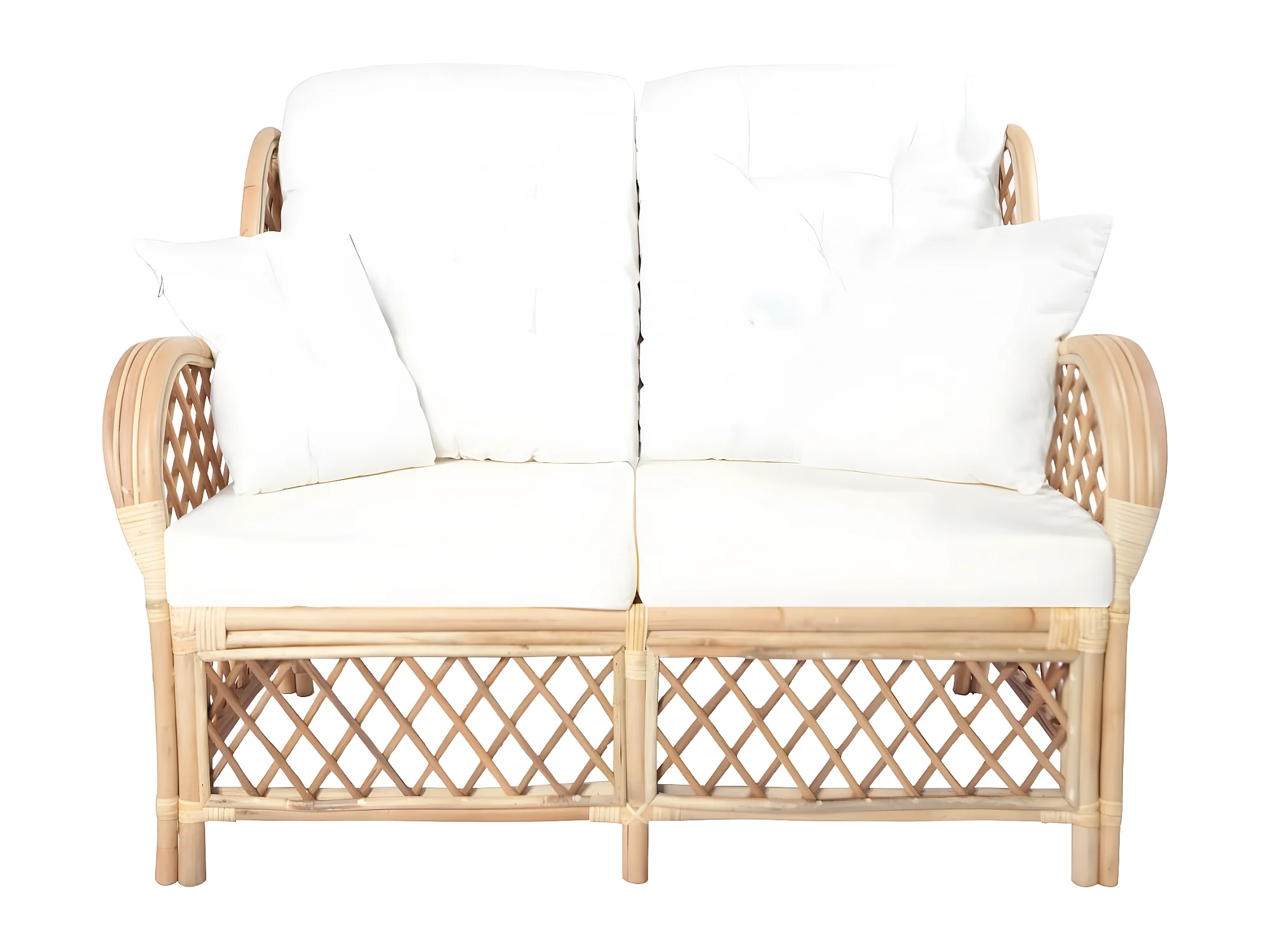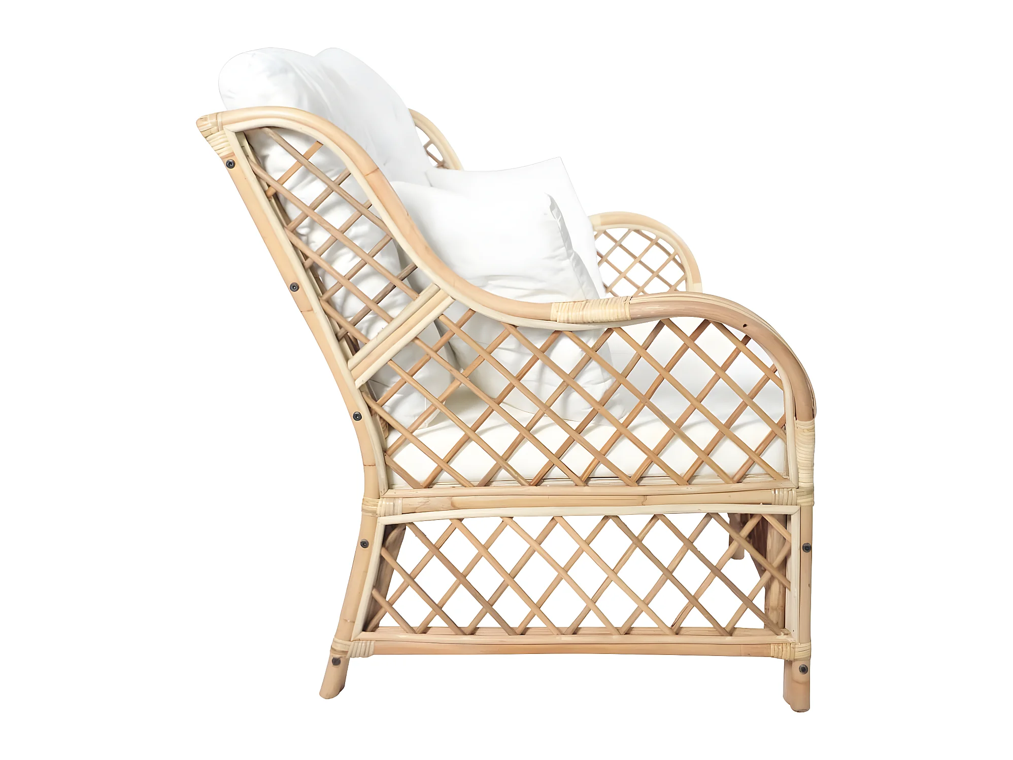 Lot de 2 angles en résine tressée avec coussins blancs - BUSAN de MYLIA