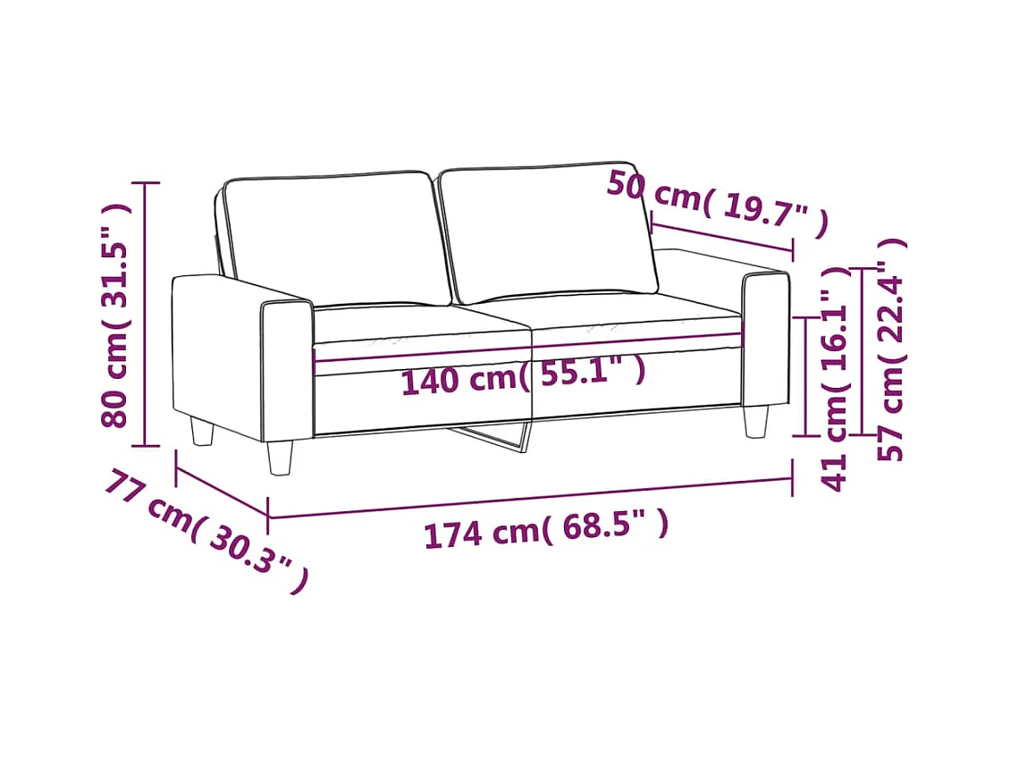 Canapé à 2 places Rouge bordeaux 140 cm Tissu