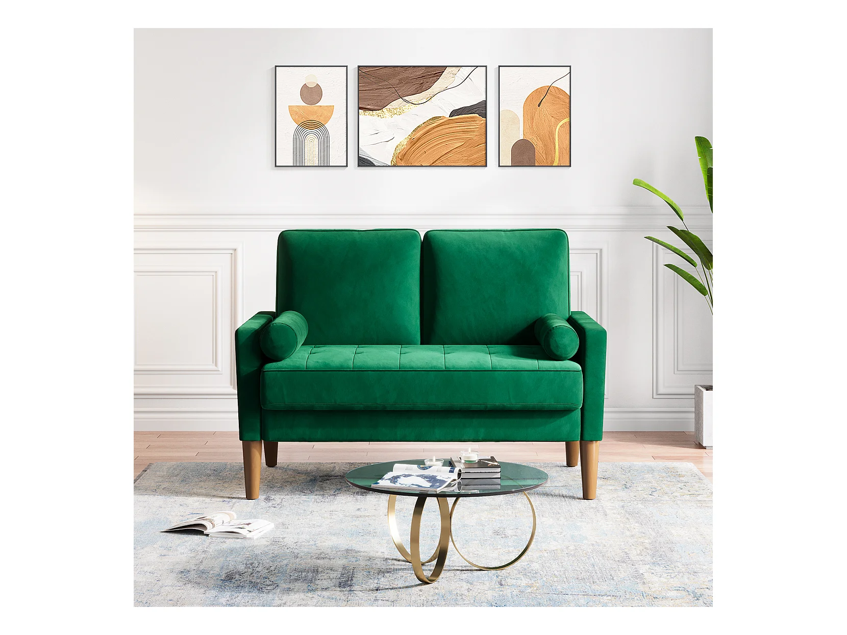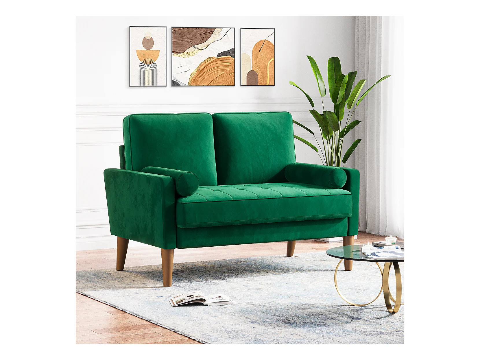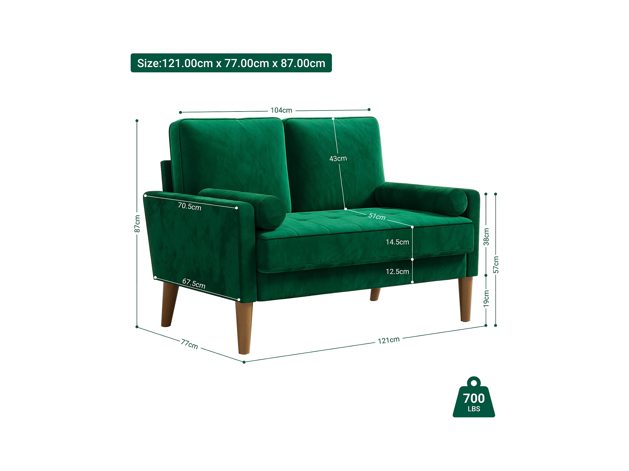 Canapé à 2 Places Scandinave,Mini Canapé à Bras Roulés en Velours Loveseat,Fauteuil Salon avec Accoudoirs,121x77x87cm - Vert